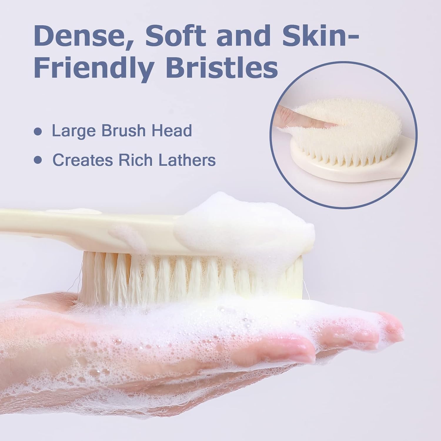 Body Back Scrubber – 17'' Long Handle Shower Brush, Anti-Mold Exfoliator for Dry & Wet Use, Deep Cleansing & Gentle Exfoliation for Smooth Skin – for Men, Women & Elderly (Cream White)