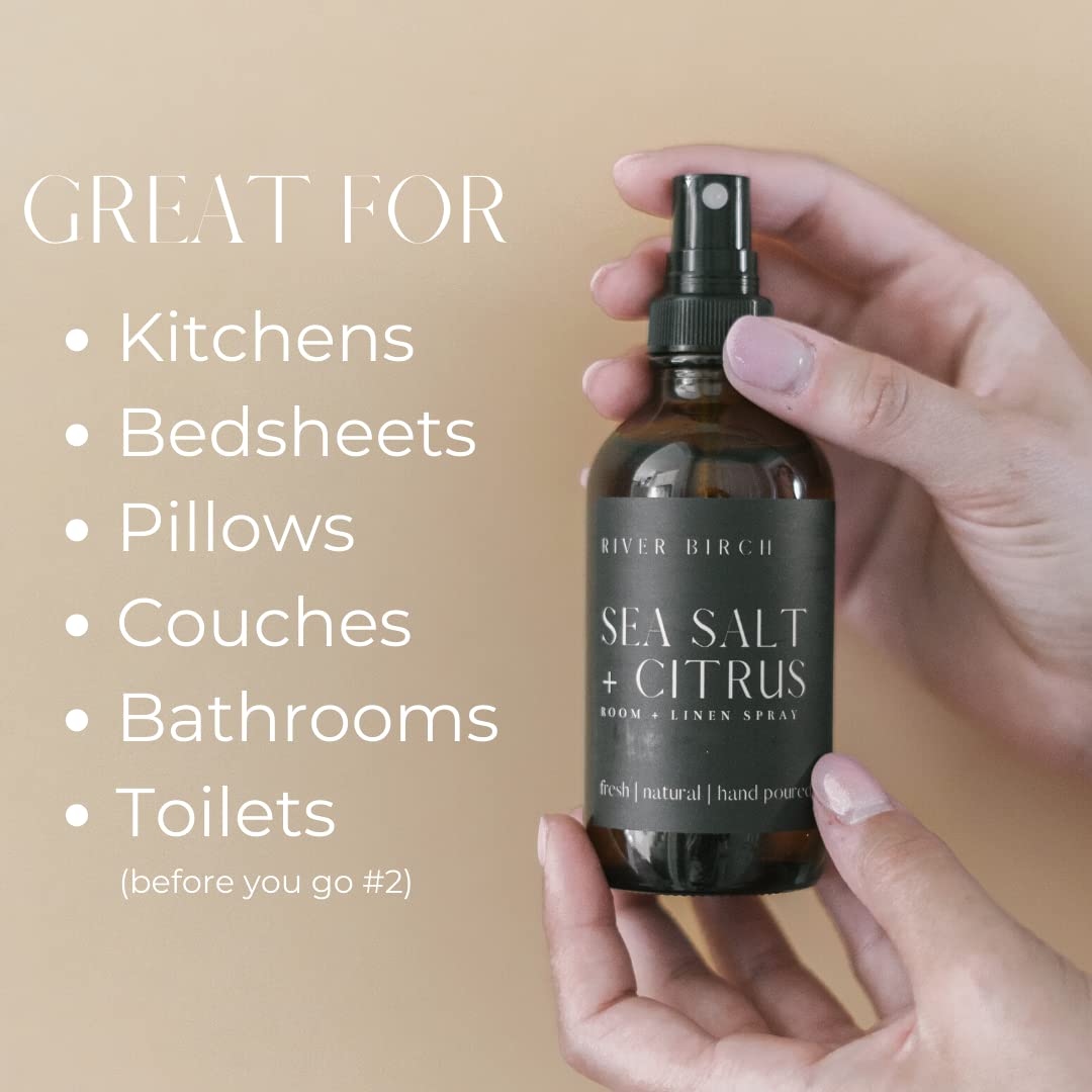 River Birch Sea Salt + Citrus Scented Linen and Room Spray | Home Fragrance | 4 oz Glass Amber Bottle | Luxury Signature Scent | Handmade in Texas