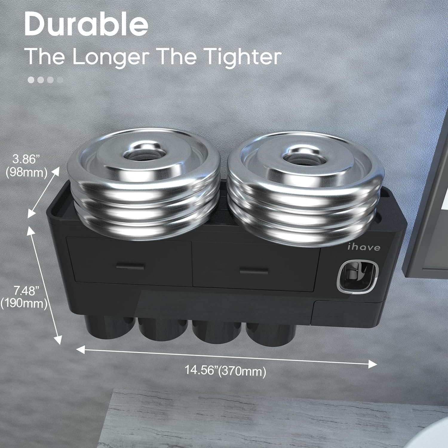 iHave Toothbrush Holders for Bathrooms, 4 Cups Toothbrush Holder Wall Mounted with Toothpaste Dispenser - Large Capacity Tray, 2 Cosmetic Drawer - Bathroom Storage & Bathroom Organizer