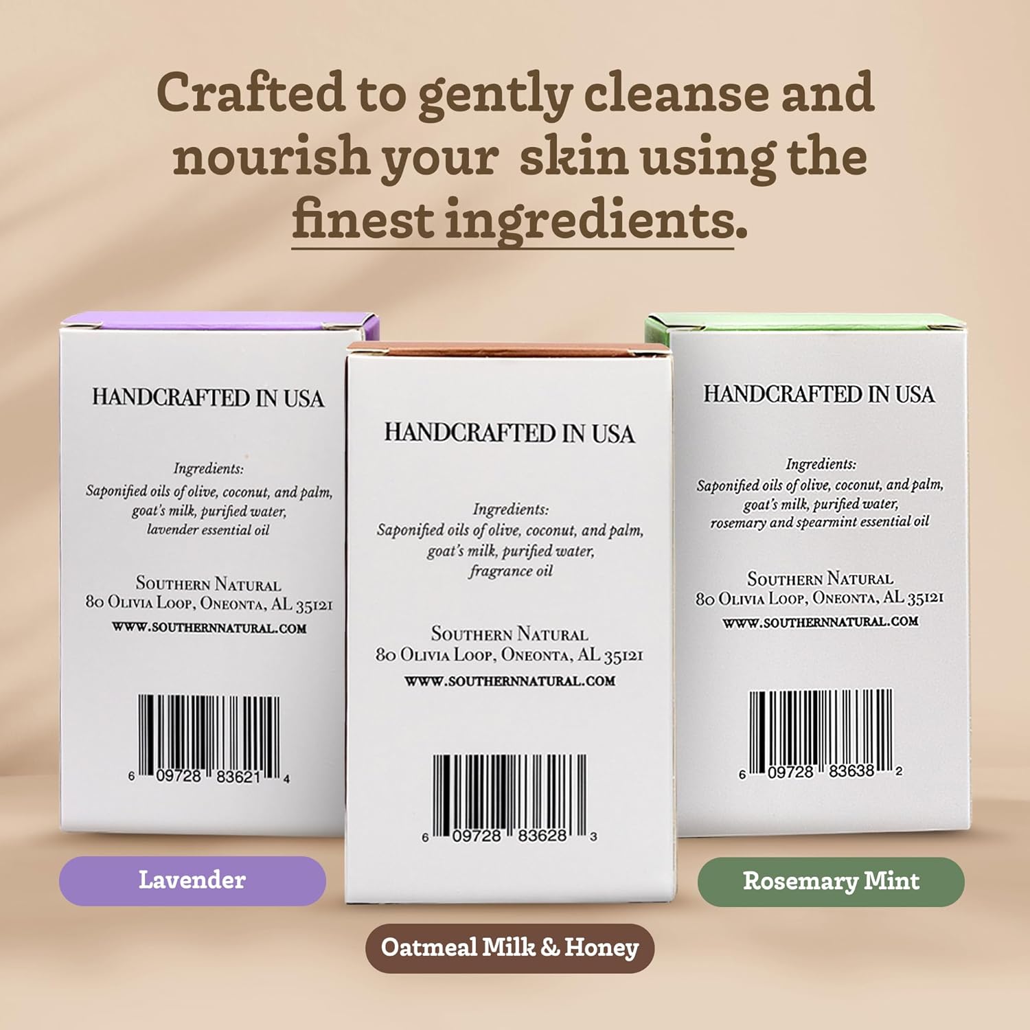 Southern Natural Goat Milk Soap Bar – Lavender, Oatmeal Milk & Honey, Rosemary Mint – Handmade for Dry and Sensitive Skin– Face & Body Wash for Men, Women, Kids, Baby – 3 pack (4-4.5 oz)