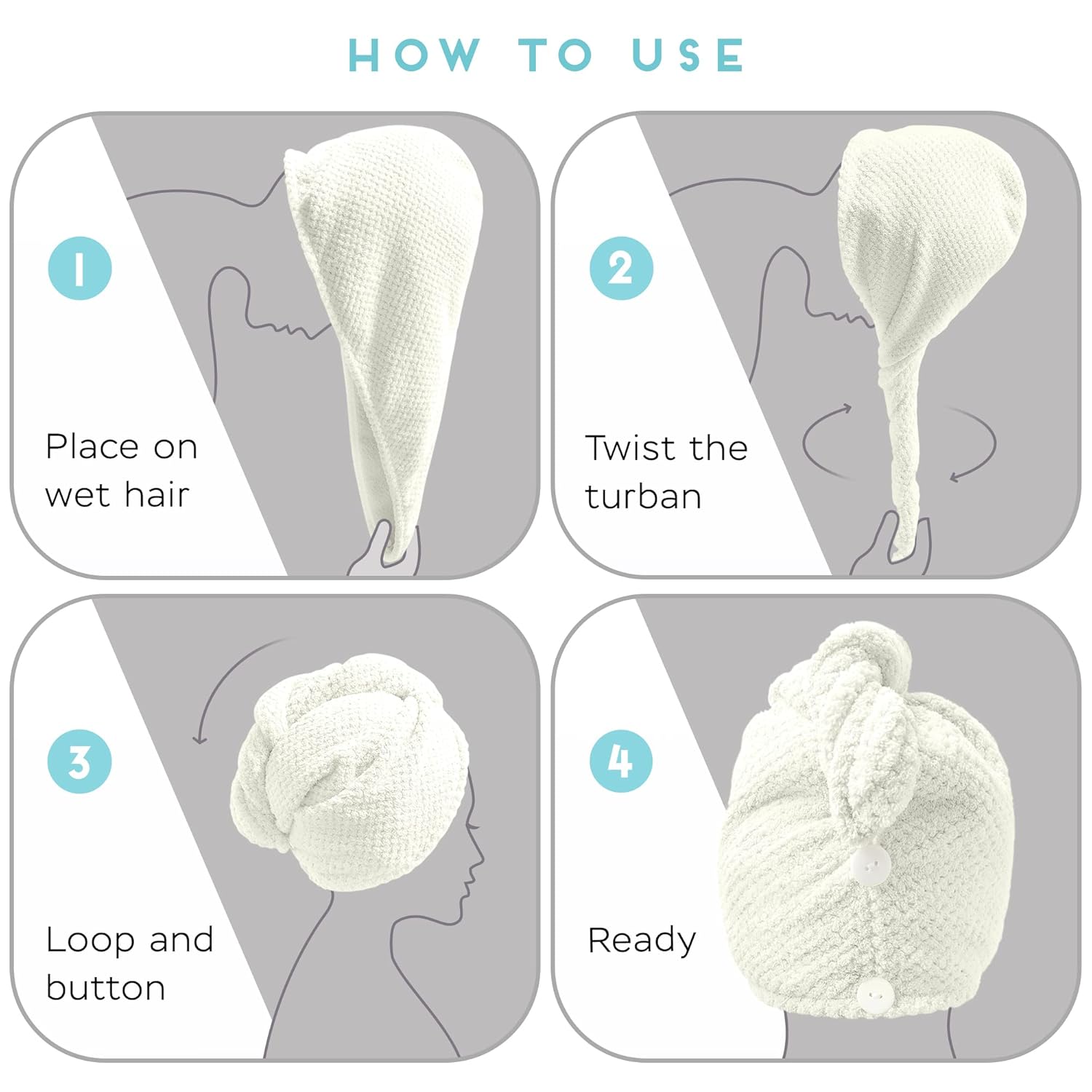 2 Pack Microfiber Hair Towel Wrap for Women, Anti Frizz Quick Drying Hair Turban for All Hair Style, Absorbent and Lightweight (Ivory)
