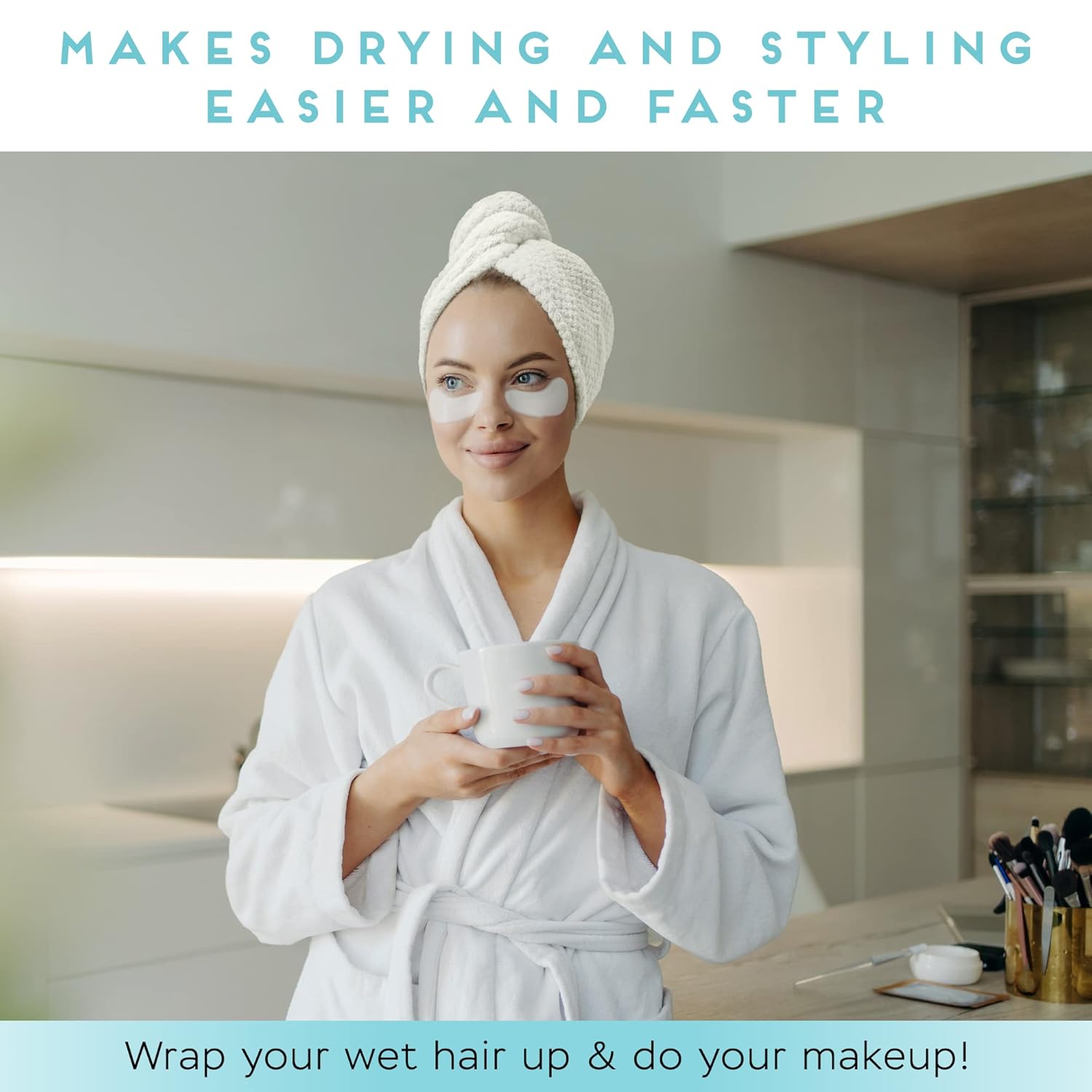 - Makes drying and styling easier and faster. Wrap your wet hair up & Do your makeup!