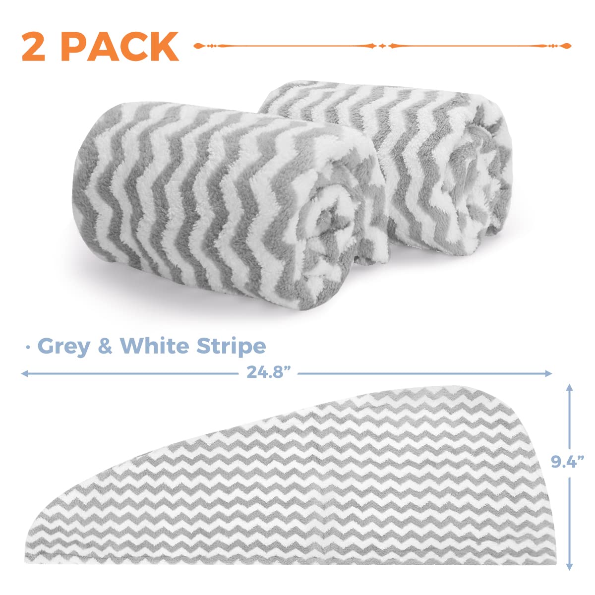ELLEWIN Microfiber Hair Towel Wrap for Women 2 Pack,Adjustable Hair Drying Turban with Two Button,Anti Frizz,Super Absorbent Quick Stripe Dry Hair Towels for Long Thick Short Hair