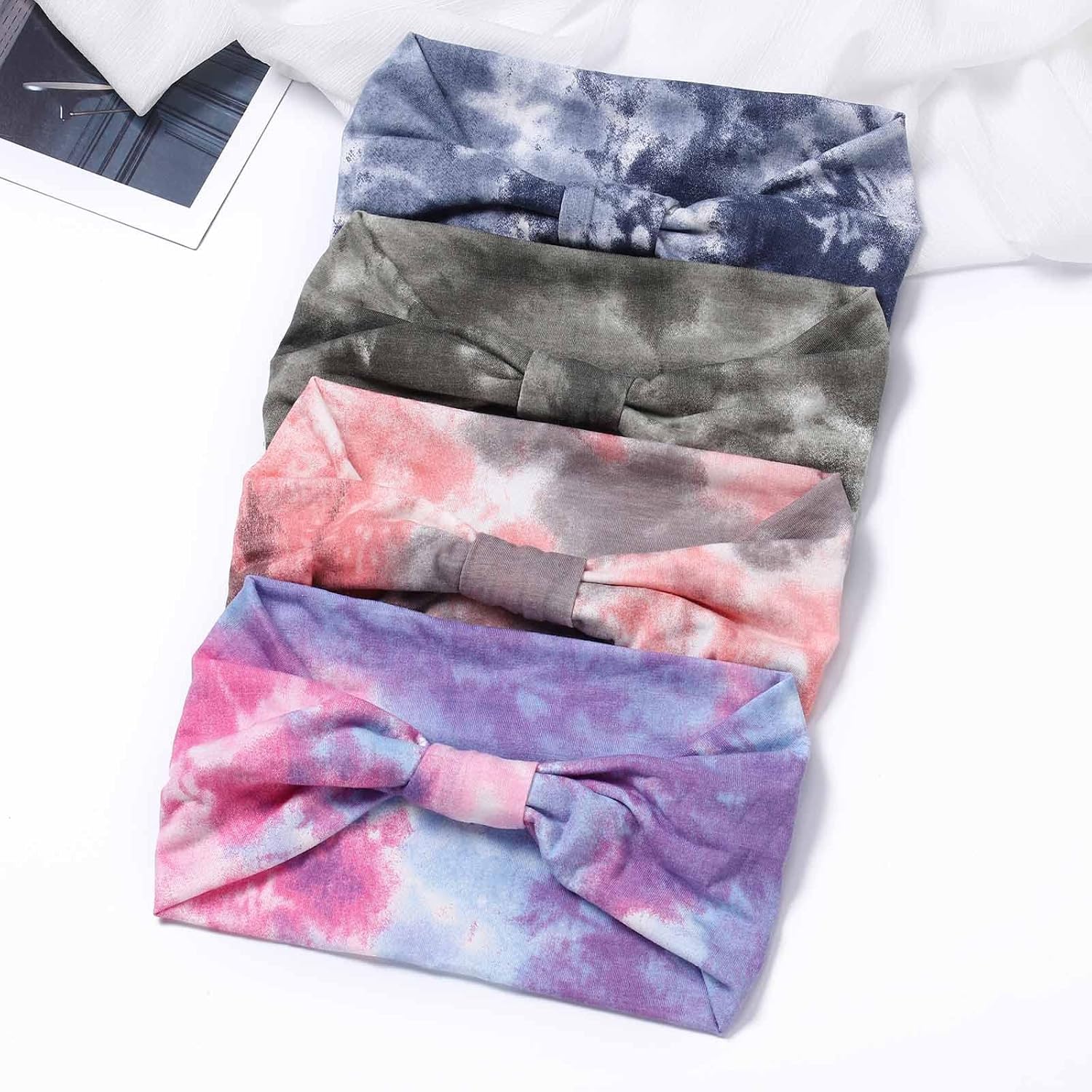 Acenail Wide Headbands Women Knotted Turban Headband Elastic Non Slip Hairbands Tie Dye Yoga Cotton Hair Scarfs Workout Boho Head Wraps Fashion Hair Accessories for Women 4Pcs(Tie Dye A)