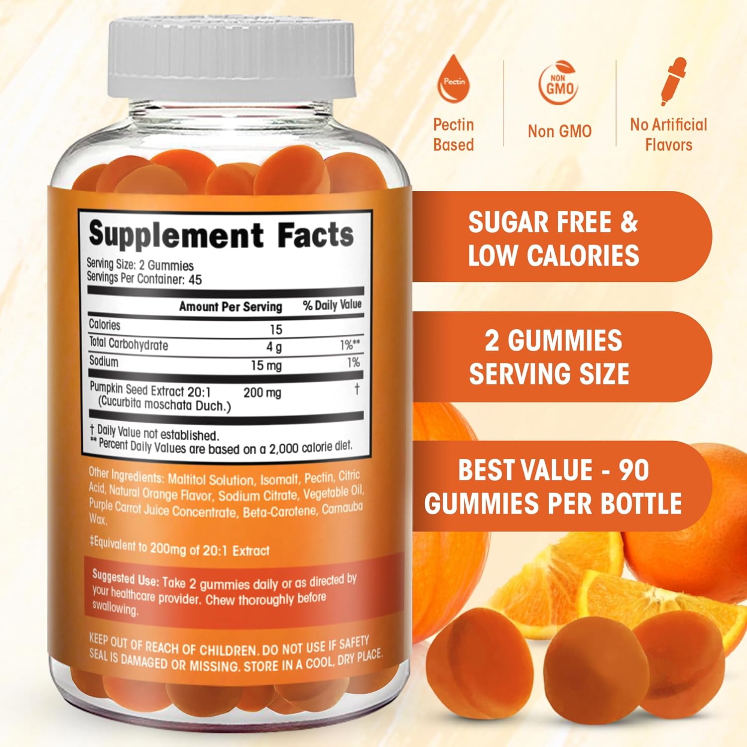 Pumpkin Seed Oil Gummies Sugar-Free Naturally Flavored- Pumpkin Seed Oil for Hair Growth, Bladder, Urinary Tract Support, Young Skin Supplement - Vegan, Halal Pumpkin Seed Extract- 90 Count