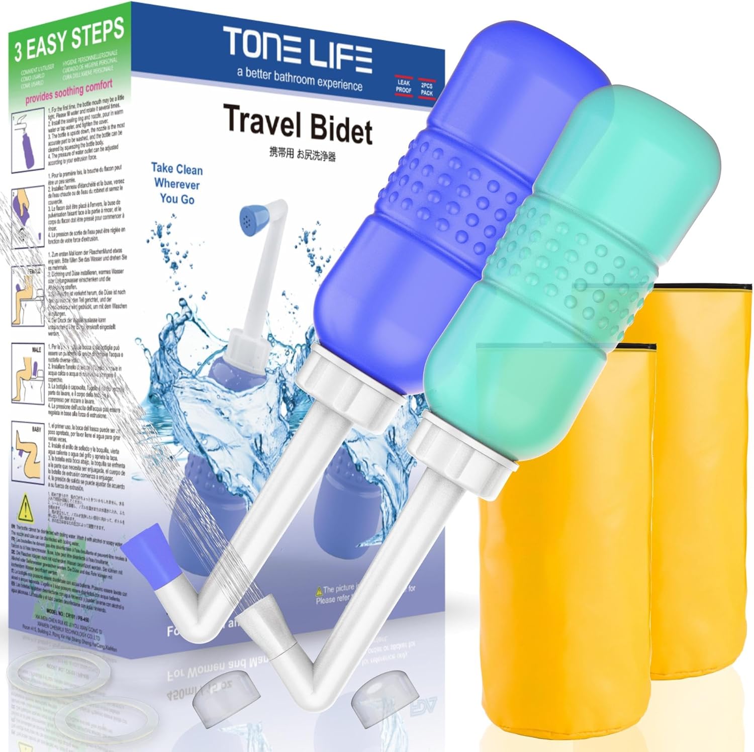 - 【2PCS-PACK-450ML Blue+Green】 - For 2 people use, the easy way to refresh yourself after bath or toilet use, handheld size and easy to carry, the portable bidet bottle is perfect for personal clean at home, office, on vacation, travel,puerpera and more..