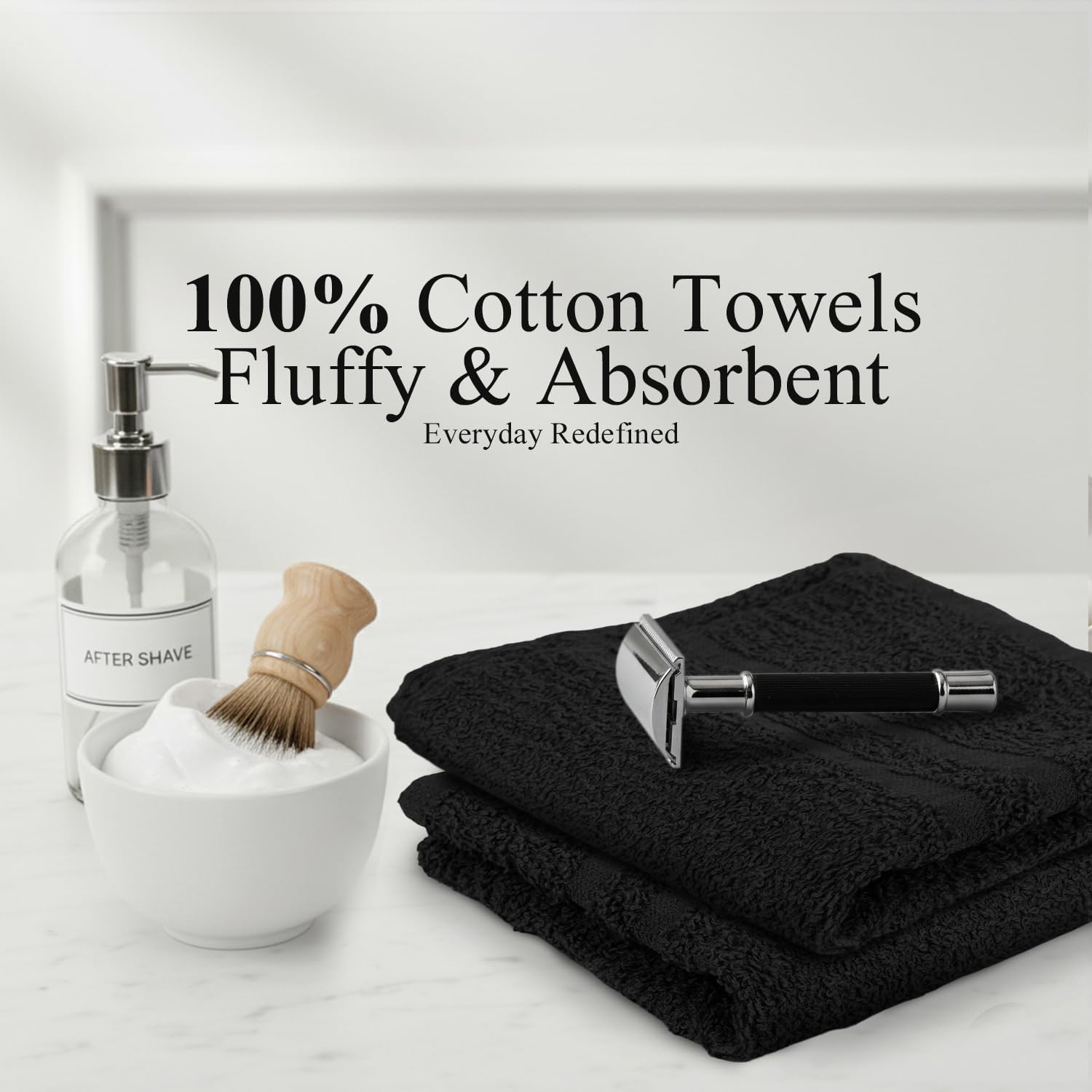 24 Pack Black Hand Towels 100% Cotton Spa Towels – 16x27 inches Highly Absorbable Facial, Gym, Hair, Face, Bulk Small Towels (Not Bleach Proof)