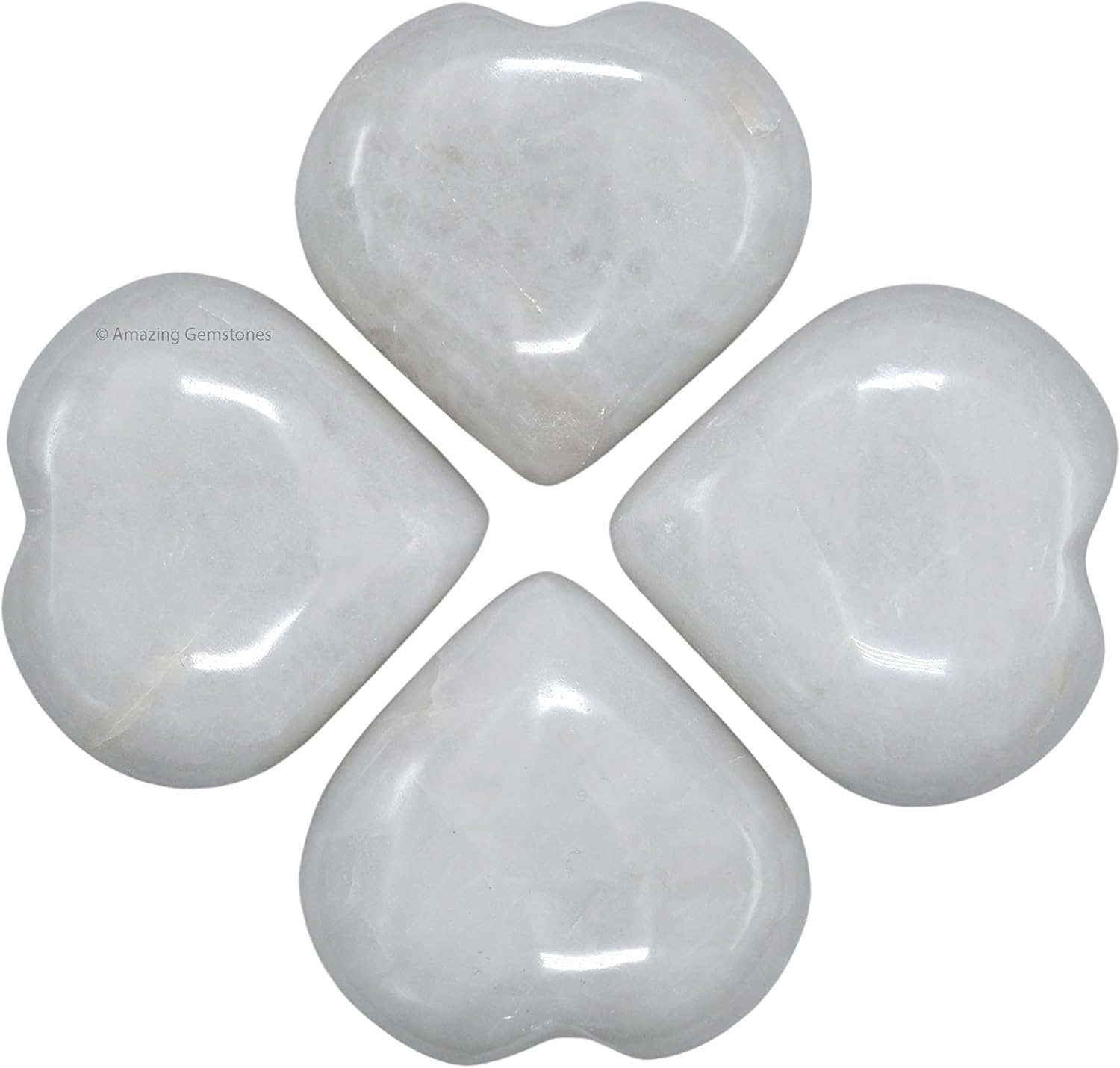 Amazing Gemstone Snow Quartz White Agate Crystal Heart Palm Stone - Pocket Massage Worry Stone for Natural Body Chakra Balancing, Reiki Healing and Crystal Grid