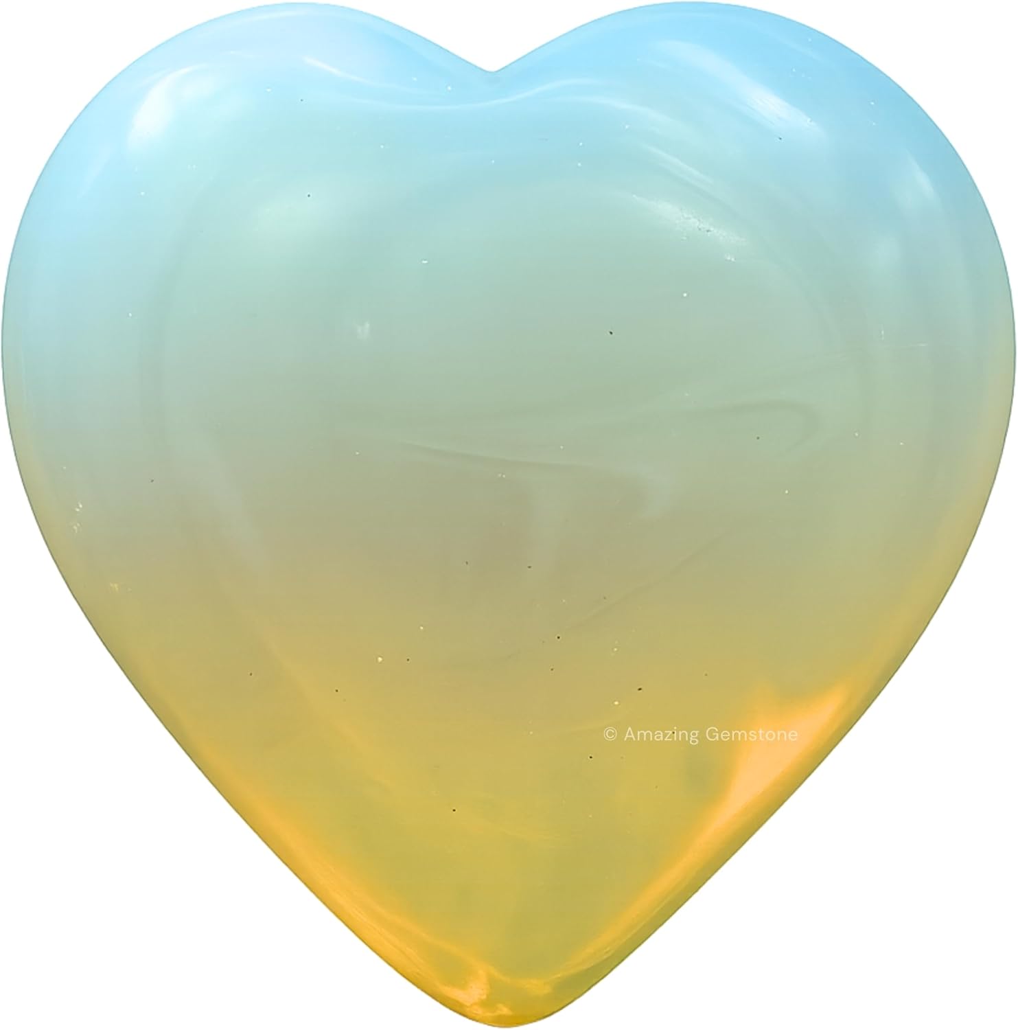 Opalite Crystal Heart Palm Stone - Pocket Massage Worry Stone for Natural Body Chakra Balancing, Reiki Healing and Crystal Grid