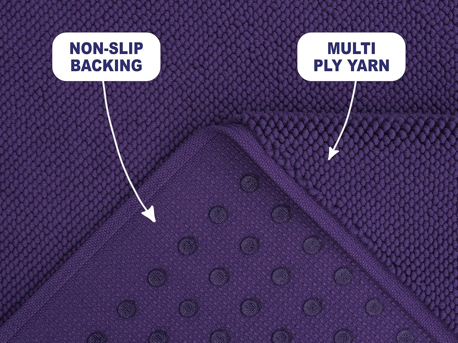 American Soft Linen Bath Rug, 17 in 24 in 100% Cotton Bath Mats Rugs for Bathroom, Slip Reducer Washable Shaggy Form Area Rugs, Purple Bath Rug