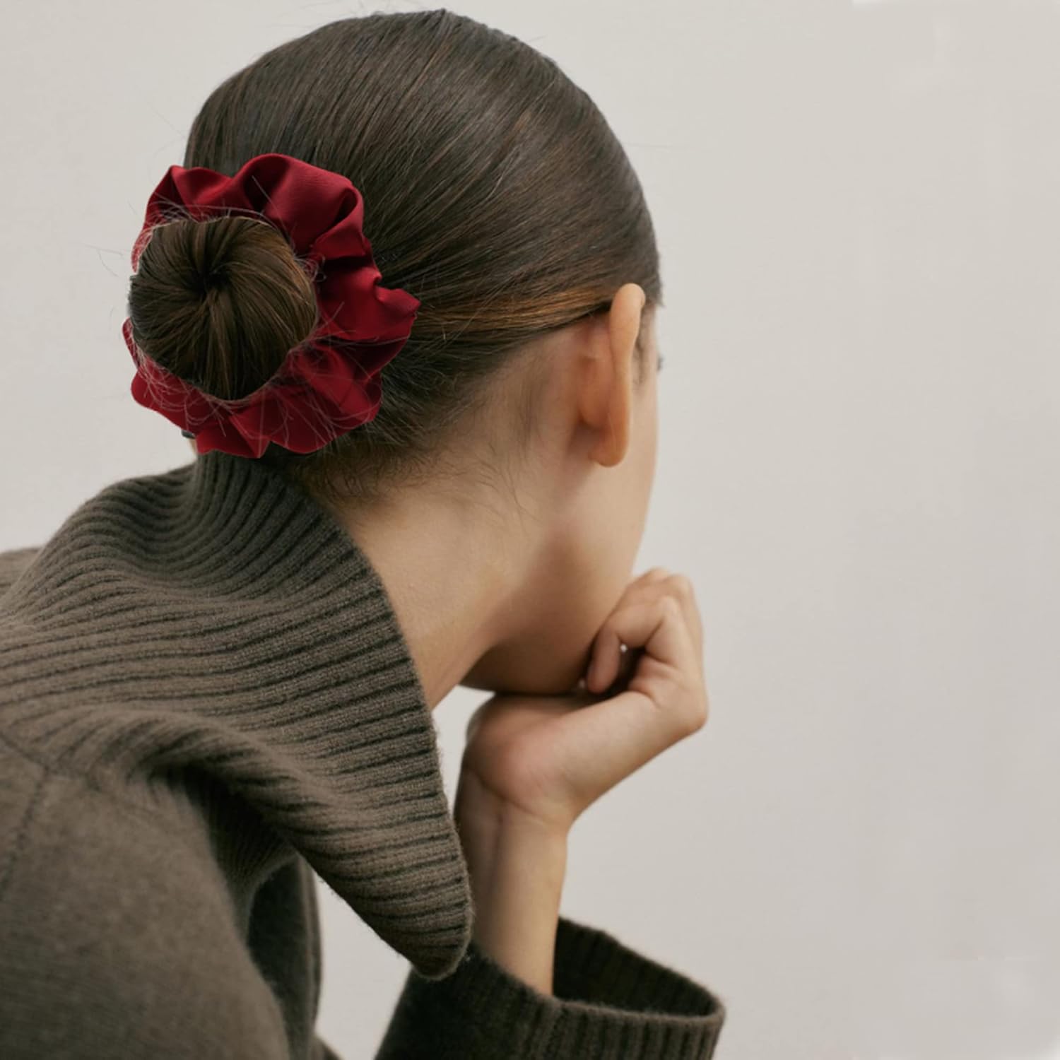 - Product Contains:A pack contains five solid color premium silk scrunchies.This fabric incorporates satin luster properties and is exclusively developed.Not a strong sheen, but a shimmer visible to the naked eye, which is more advanced