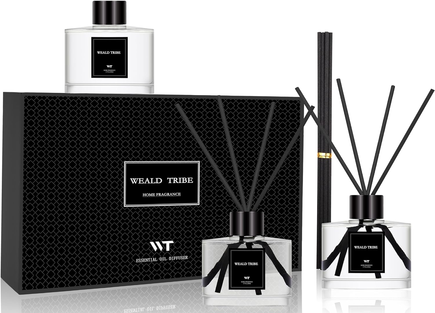 - Package Contents: 3 bottles of high quality liquid aromatherapy, 12 black fiber sticks, and 1 luxurious and beautiful box.