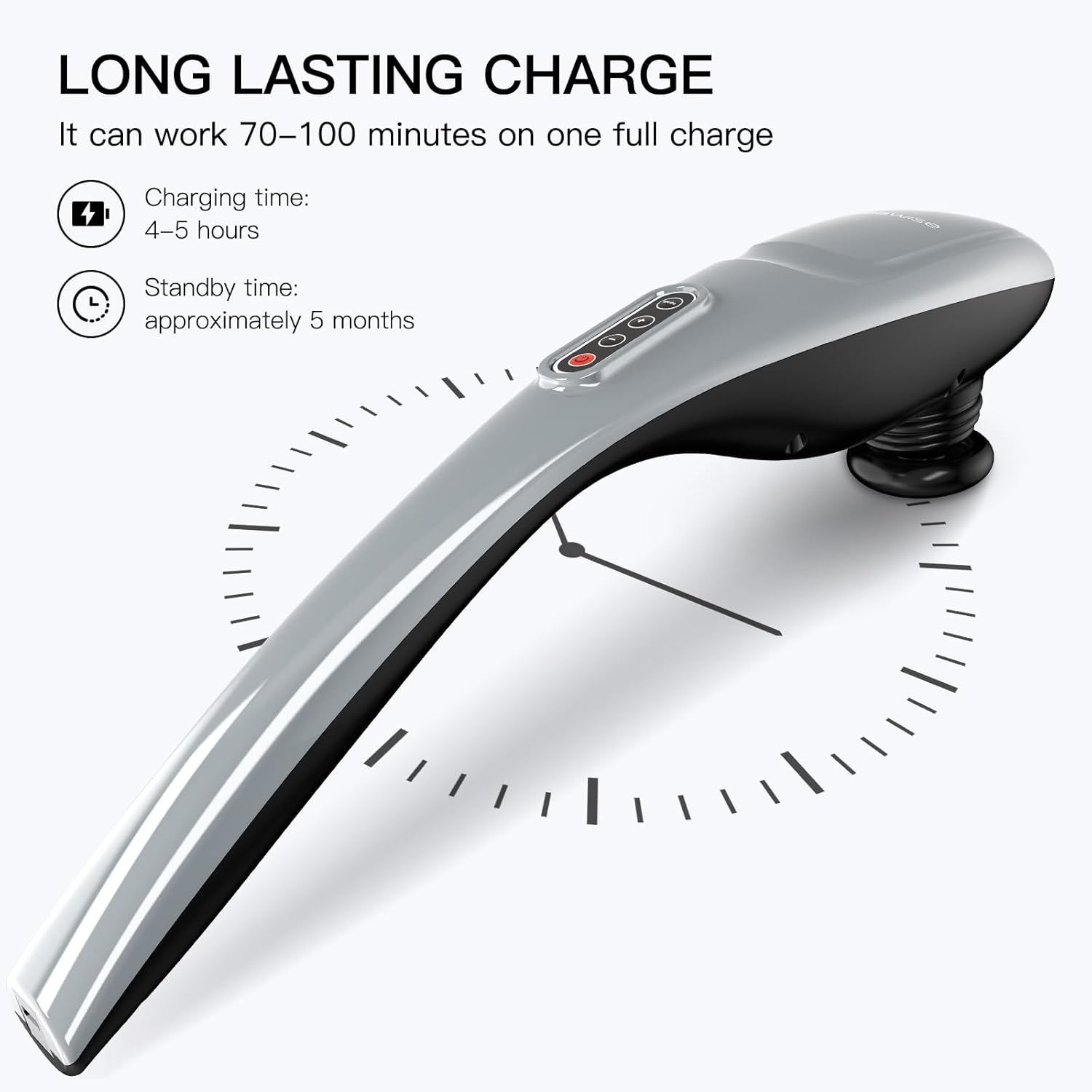 MEGAWISE Handheld Back Massager | Deep Tissue Percussion Massage for Back, Neck, Shoulders, Waist and Legs (Cordless Silver)