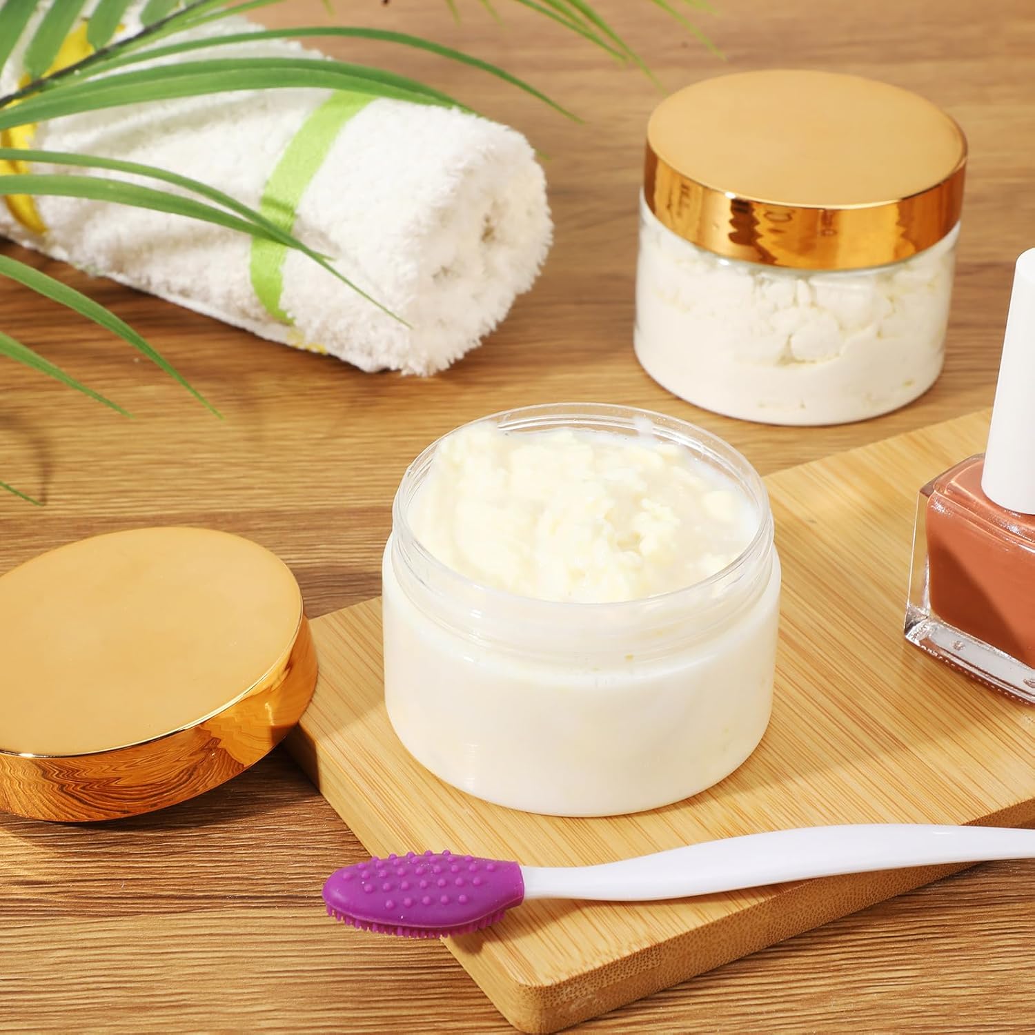 Patelai 4 Pieces Round Wide-mouth Leak Proof Plastic Container Jars with Lids for Travel Storage Makeup Beauty Products Face Creams Oils Salves Ointments DIY Making(4 Ounce,Gold)