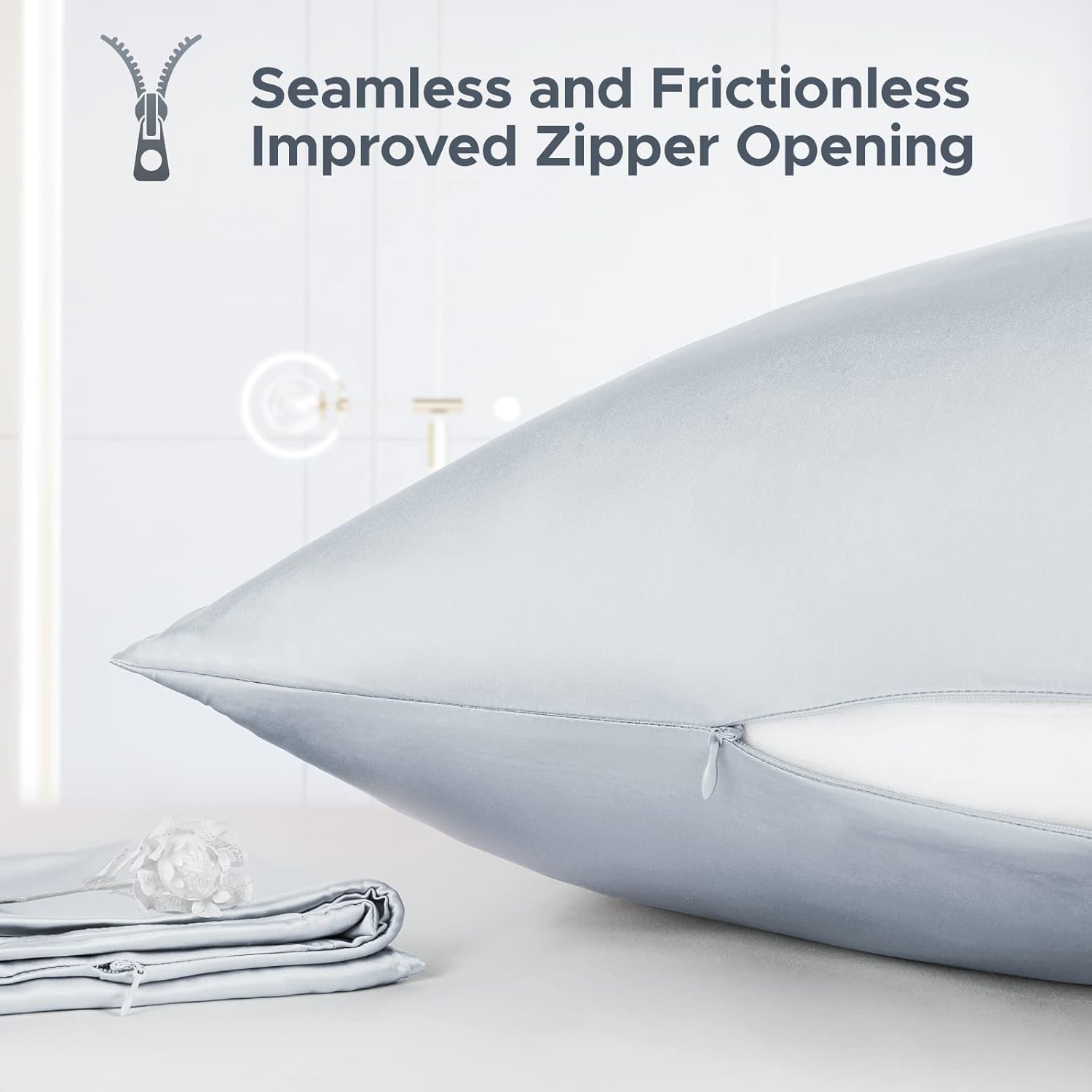 100% Pure Mulberry Silk Pillowcase for Hair and Skin - Allergen Resistant Dual Sides,600 Thread Count Silk Bed Pillow Cases with Hidden Zipper,1pc,Standard Size,Gray