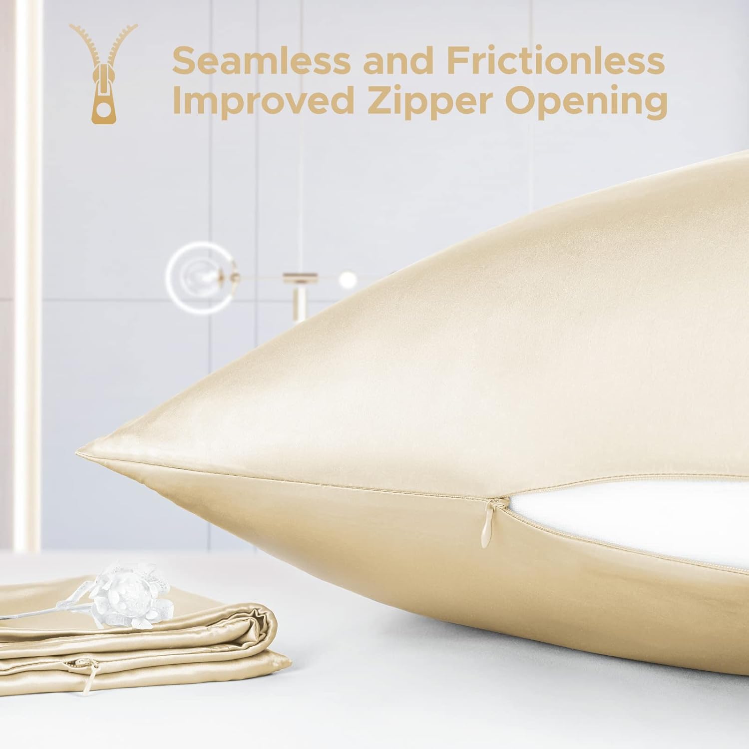 100% Pure Mulberry Silk Pillowcase for Hair and Skin - Allergen Resistant Dual Sides,600 Thread Count Silk Bed Pillow Cases with Hidden Zipper,1pc,Queen Size,Champagne