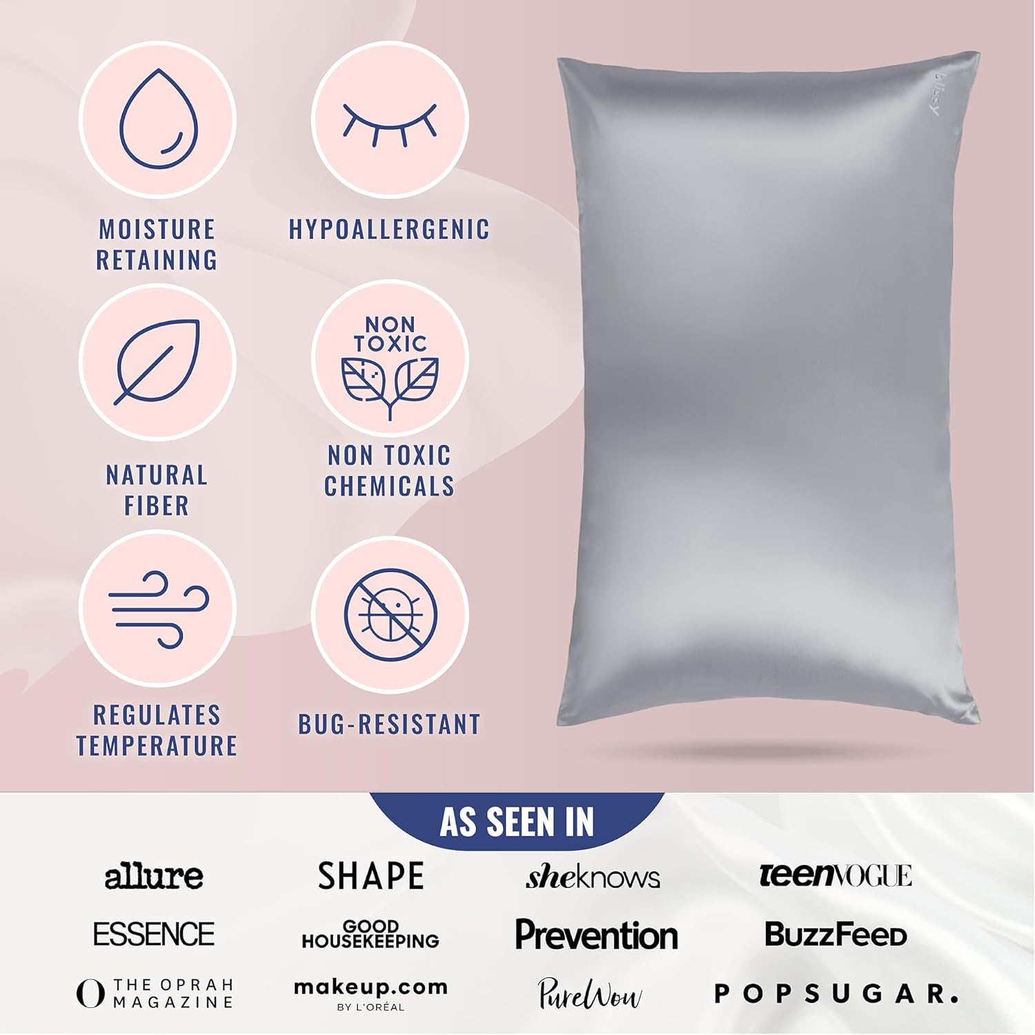 Blissy Silk Pillowcase - 100% Pure Mulberry Silk - 22 Momme 6A High-Grade Fibers - Silk Pillow Cover for Hair & Skin - Regular, Queen & King (Silver, King)
