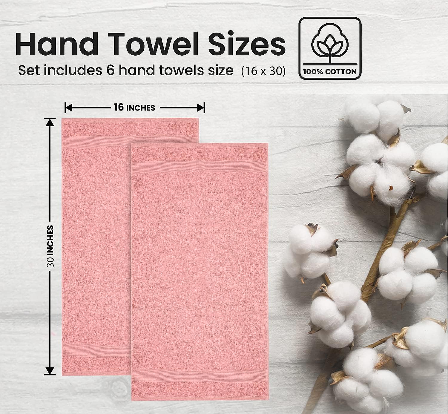 Premium Hand Towels Pack of 6 (16" x 30”) 100% Combed Ring Spun Cotton | Highly Absorbent Hand Towels Set | Ultra Soft for Home, Gym & Spa (Pink)