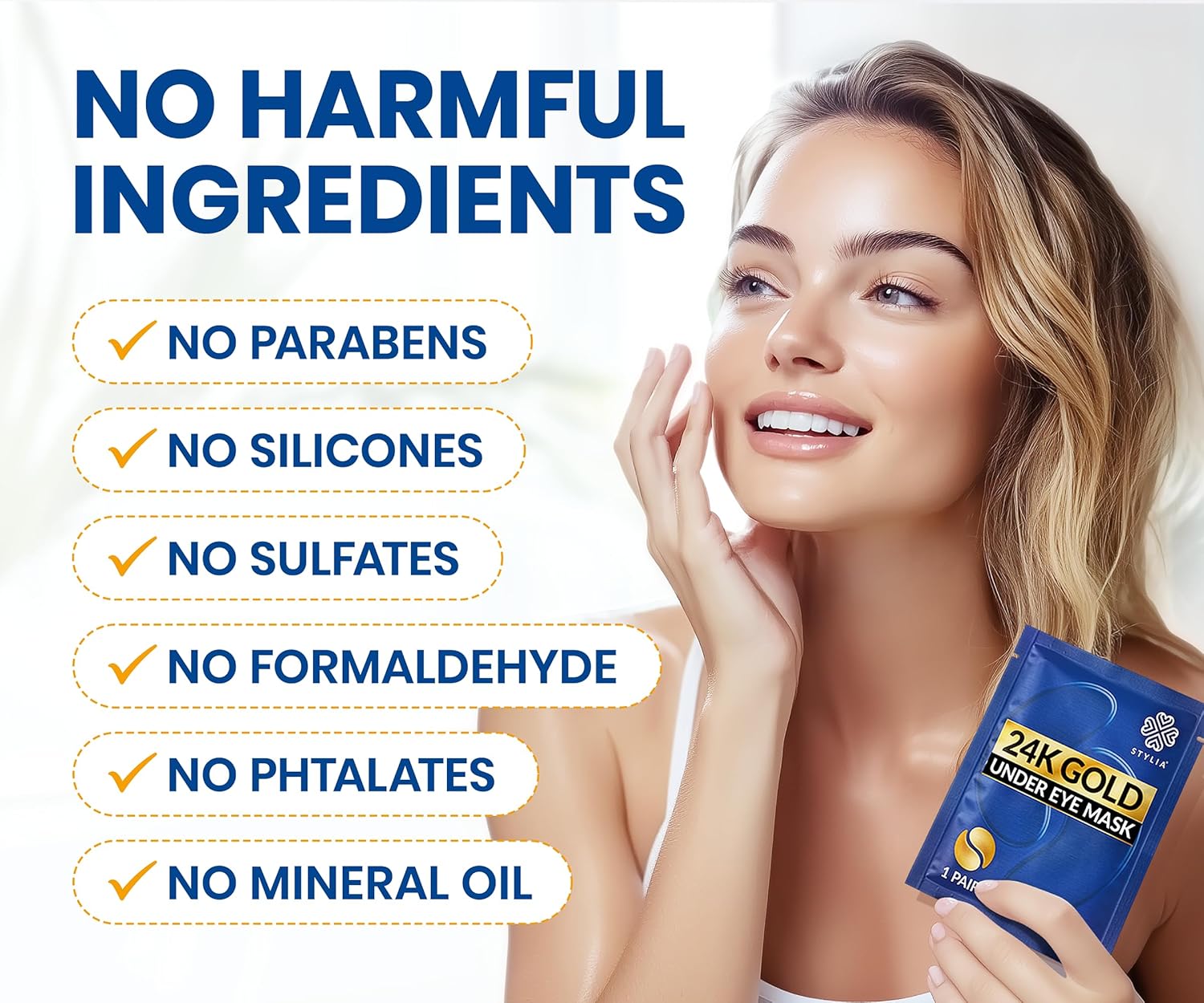 Stylia Under Eye Patches for Puffy Eyes and Dark Circles (20 Pairs) - 24k Gold Under Eye Mask with Vitamin C, Hyaluronic Acid, Pearl Extract - Eye Masks for Dark Circles and Puffiness
