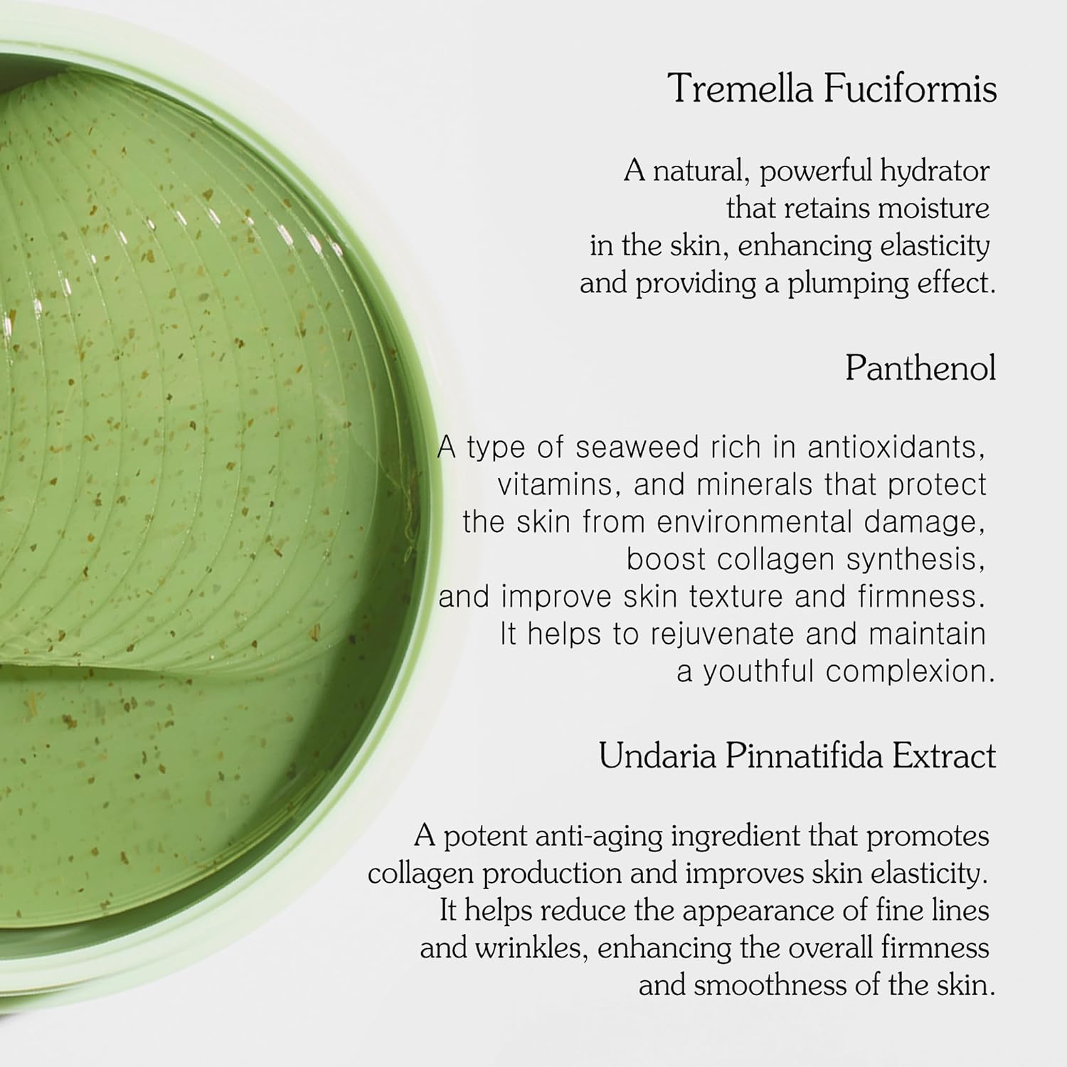 - Soothes & Calms with Centella Asiatica & Allantoin – This eye gel patch is enriched with centella asiatica and allantoin, known for their soothing properties, to calm irritation, reduce redness, and strengthen the skin barrier for more resilient skin.