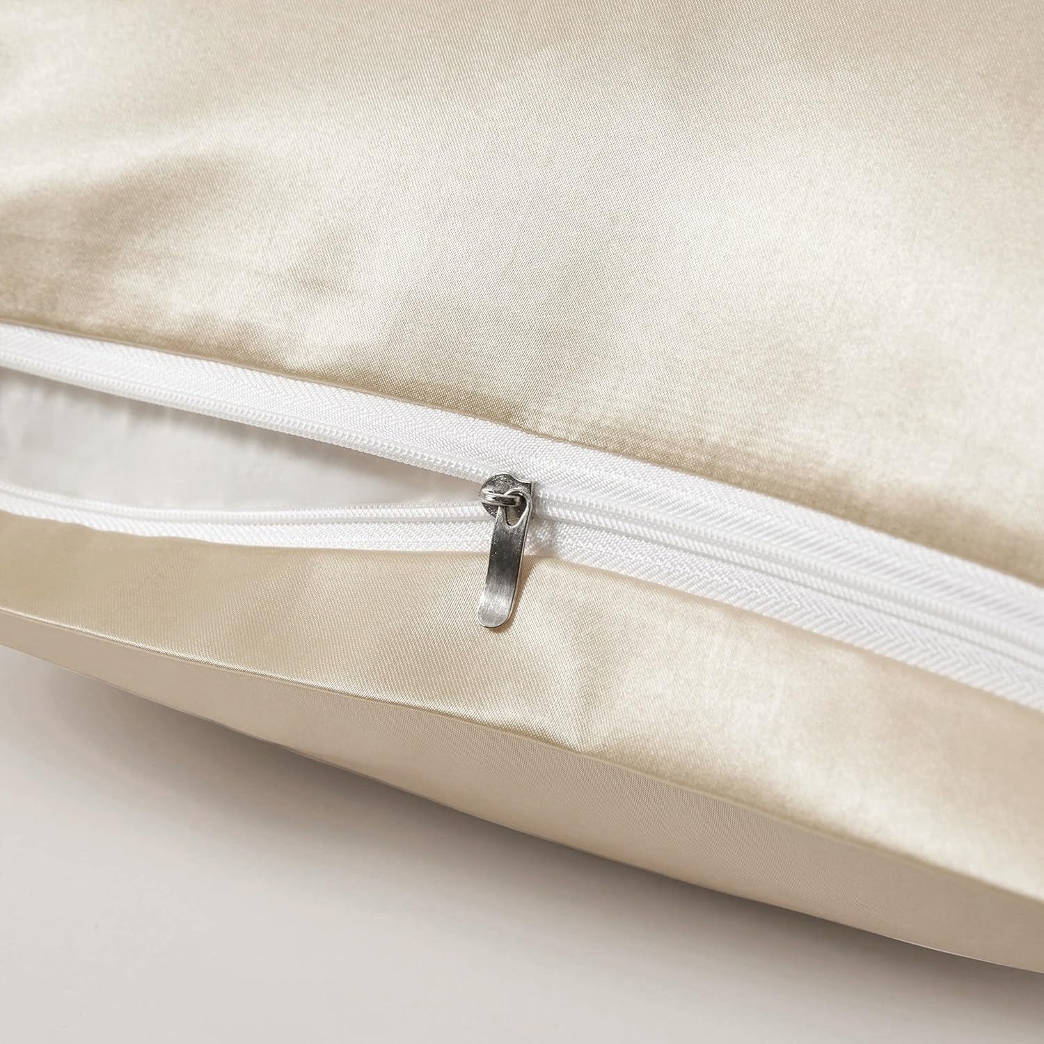 - PREMIUM QUALITY FABRIC:Our Satin Pillowcase is made with high quality 100% polyester fabric for optimal softness and easy care. These satin pillowcases are constructed from 100% polyester which gives it its smooth finish and exceptional longevity, even after extensive wash and wear.The hidden zipper closure prevents slipping and ensures that the pillow stays perfectly in the satin pillowcase. And the unique zippered closure is placed on one side, the satin pillow case can be used both sides.