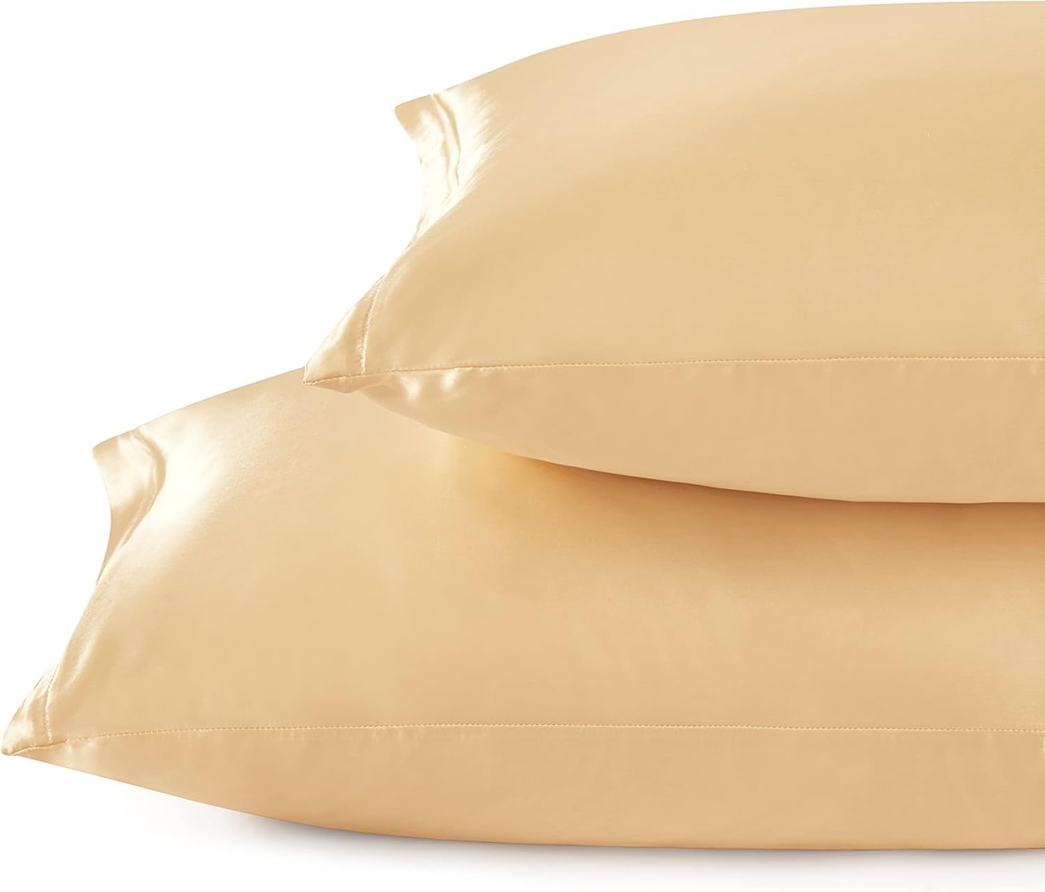 Juwenin Bedding,Super Soft and Luxury Silky Satin Pillowcase with Zipper (Silky Satin Pillow Case for Hair) Set of 2 (Champagne, Standard(20''x26''))