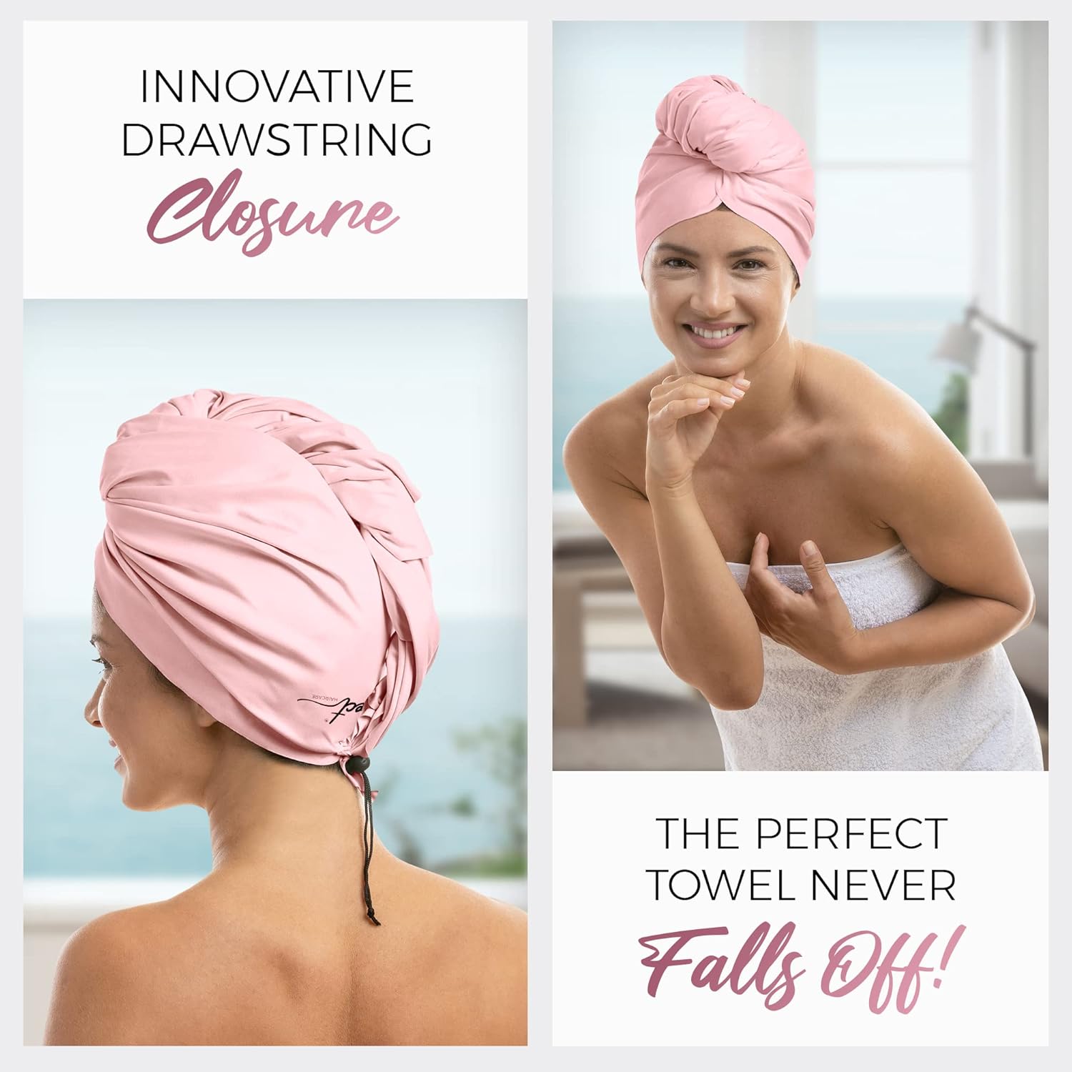 Microfiber Hair Towel Wrap + 2 Smooth Large Hair Drying Tie for Wet Hair - Anti-Frizz, Gentle, Absorbent Hair Scrunchies or Face Washing Wristband