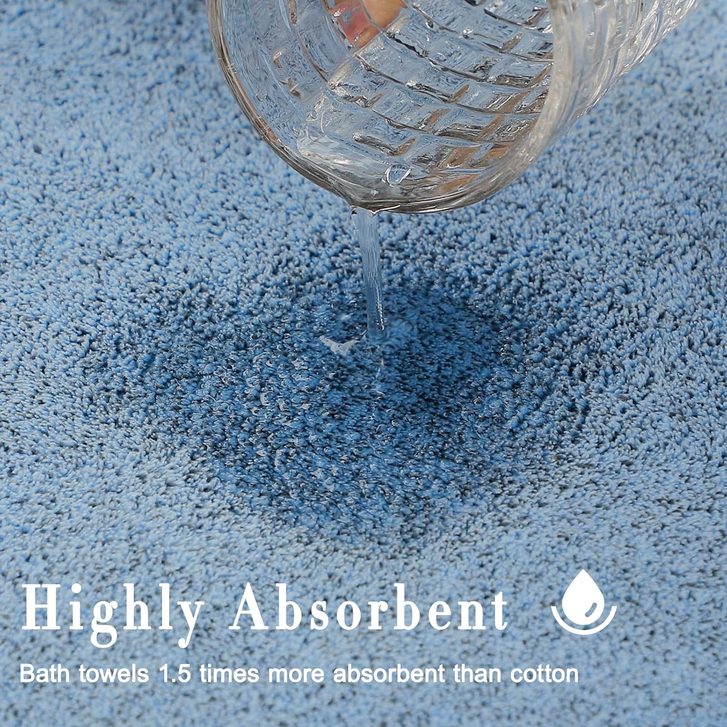 - Absorbent & Quick Drying: Great GSM and large bath towel surface area can provide better water absorption. Plush bath towels are breathable and quick drying , saving drying time and avoiding wet stains and odor. Our super absorbent towels dry skin with gentle pressure to absorb moisture instead of rubbing skin to remove moisture, which will protect our skin.