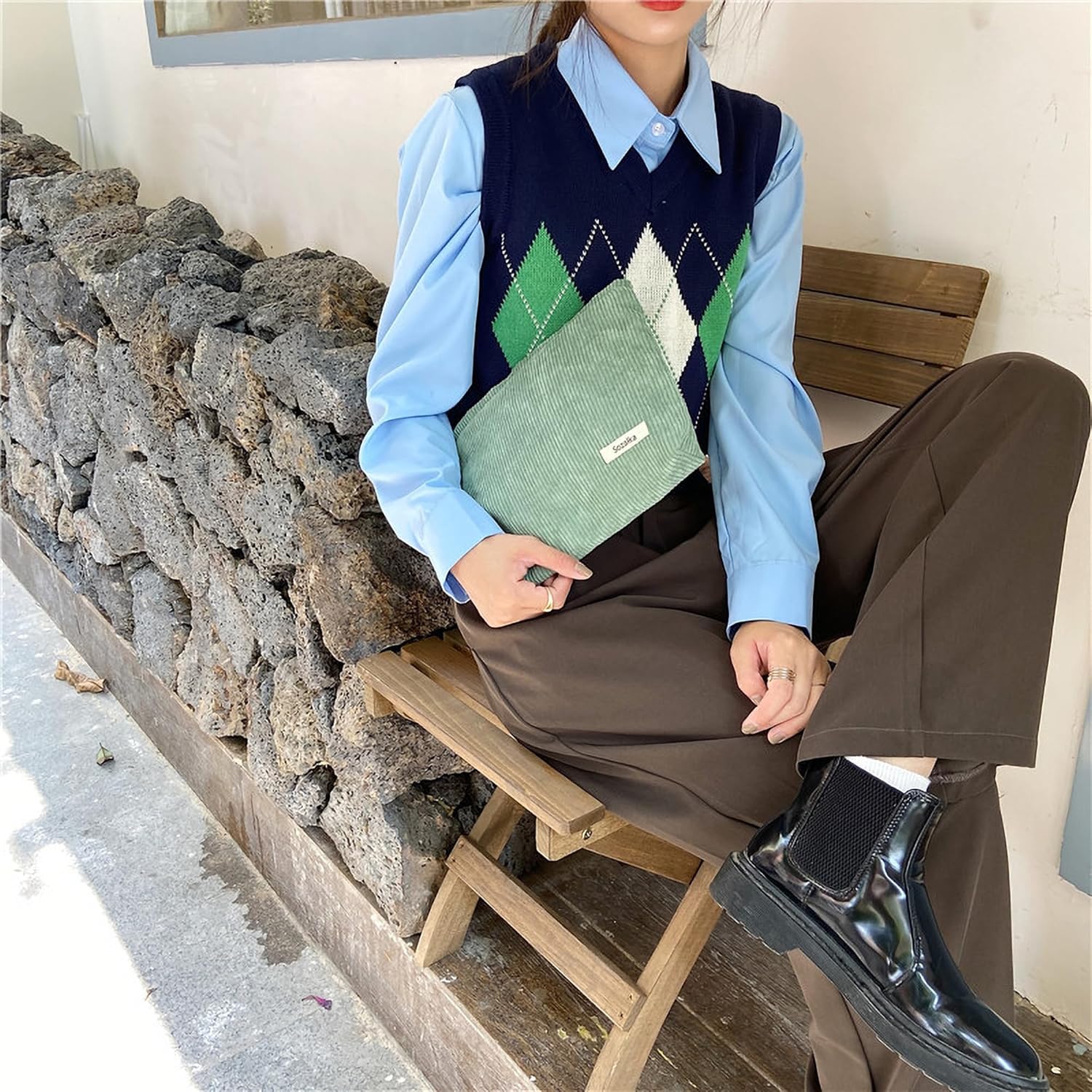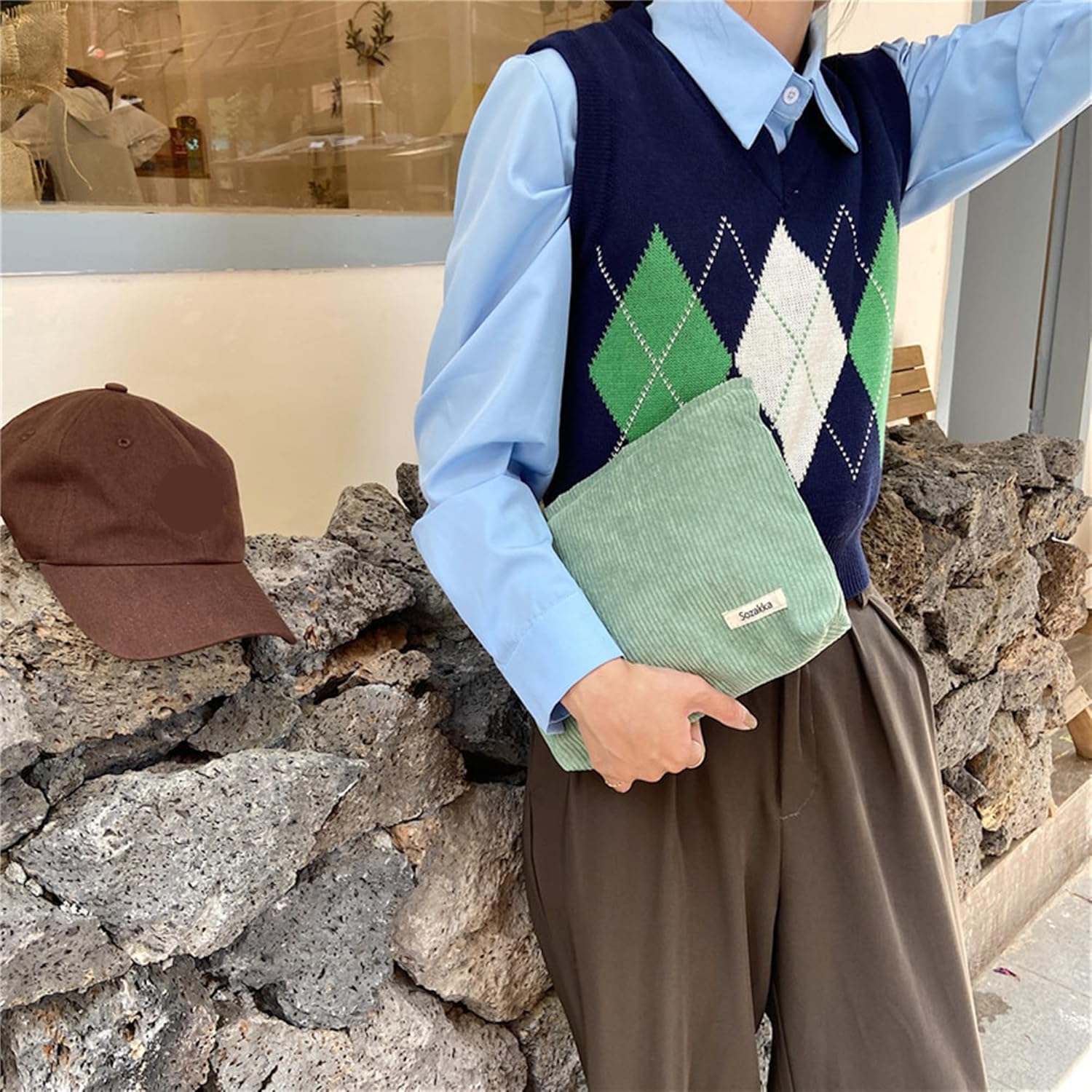 Cosmetic Bags for Women - Corduroy Cosmetic Bag Aesthetic Women Handbags Purses Smile Dots Makeup Organizer Storage Makeup Bag Girls Case Bags (Pure Green)