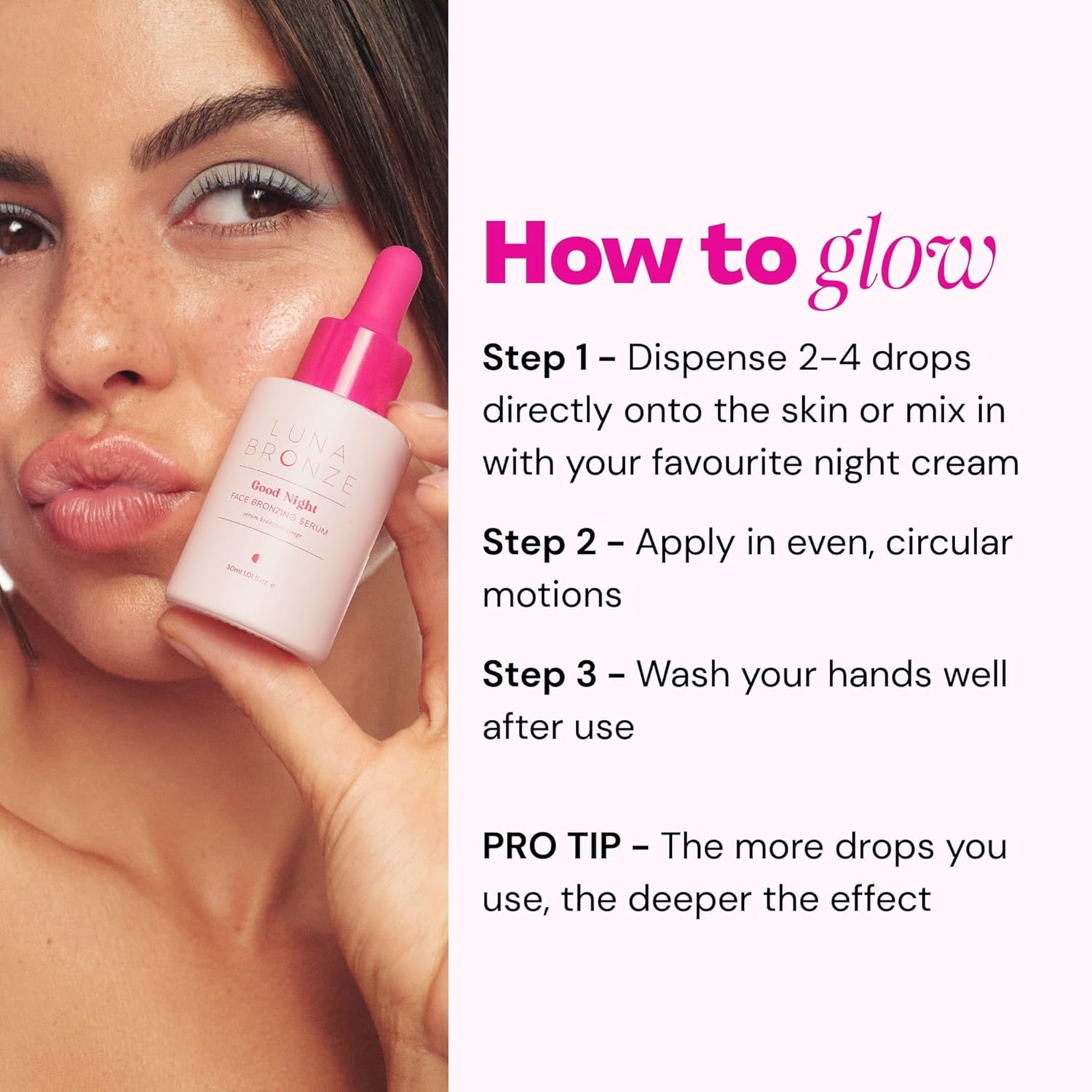Luna Bronze Good Night Face Tanning Drops | Overnight Face Bronzing Serum for a Luminous, Natural Looking Glow | Hydrating Formula with Vitamin C | Infused with Australian Botanics (30ml/1.01 fl. oz)