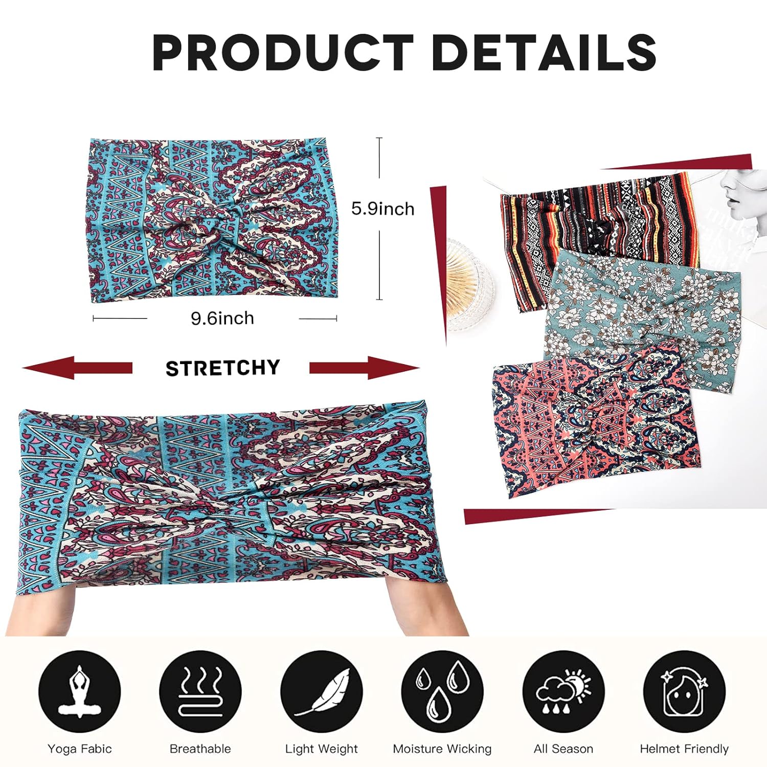 - Extra Wide Headbands - Designed with retro front knot turban headband, size in 15*25cm/6*9.8 inch, and can be stretched up to 13inch. Stay in place nicely is suitable for women and teen girls with different head sizes.