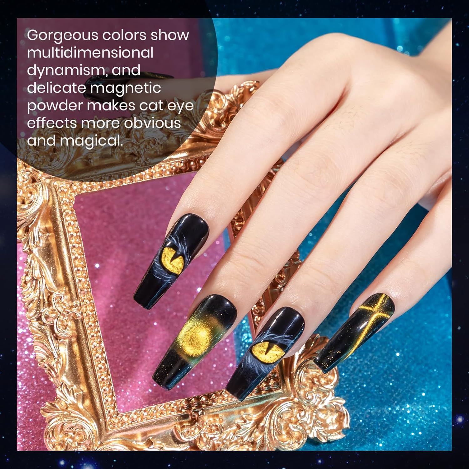 - Magic Galaxy Effect on Nails and Ideal Gift Choice: Chameleon colors cat eye effect and holographic shimmer galaxy effect cateye nail gel brings you an amazing 9D cat eye effect on nails, to feel the gradient colors under different lights or angles. In addition, It is also a ideal Mother's Day nail gift for ladies.