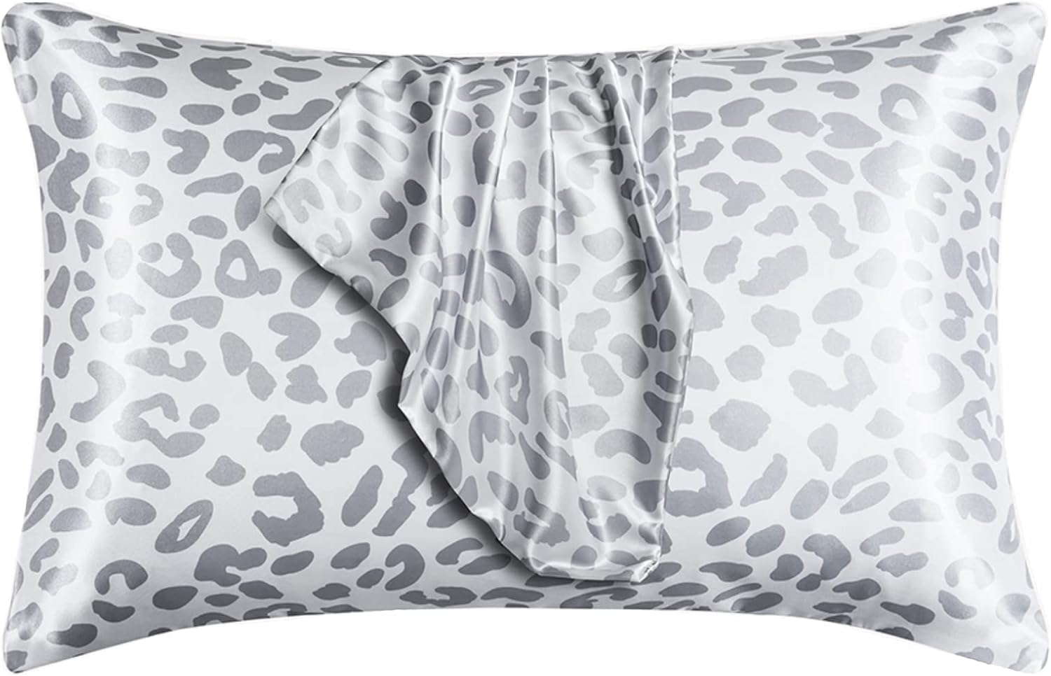 Silky Satin Toddler Pillowcases Pack of 2, 13x18 Inches Grey Leopard Printed Travel Pillowcases with Envelope Closure, Small Kids Pillow Cases Covers