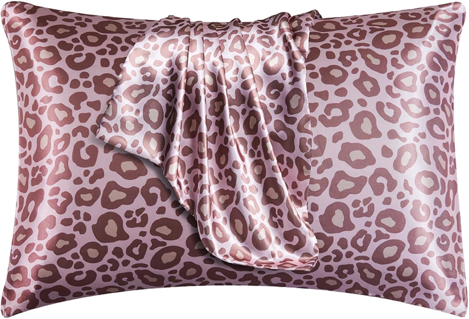 Silky Satin Toddler Pillowcases Pack of 2, 13x18 Inches Pink Leopard Travel Pillowcases with Envelope Closure, Small Kids Pillow Cases Covers
