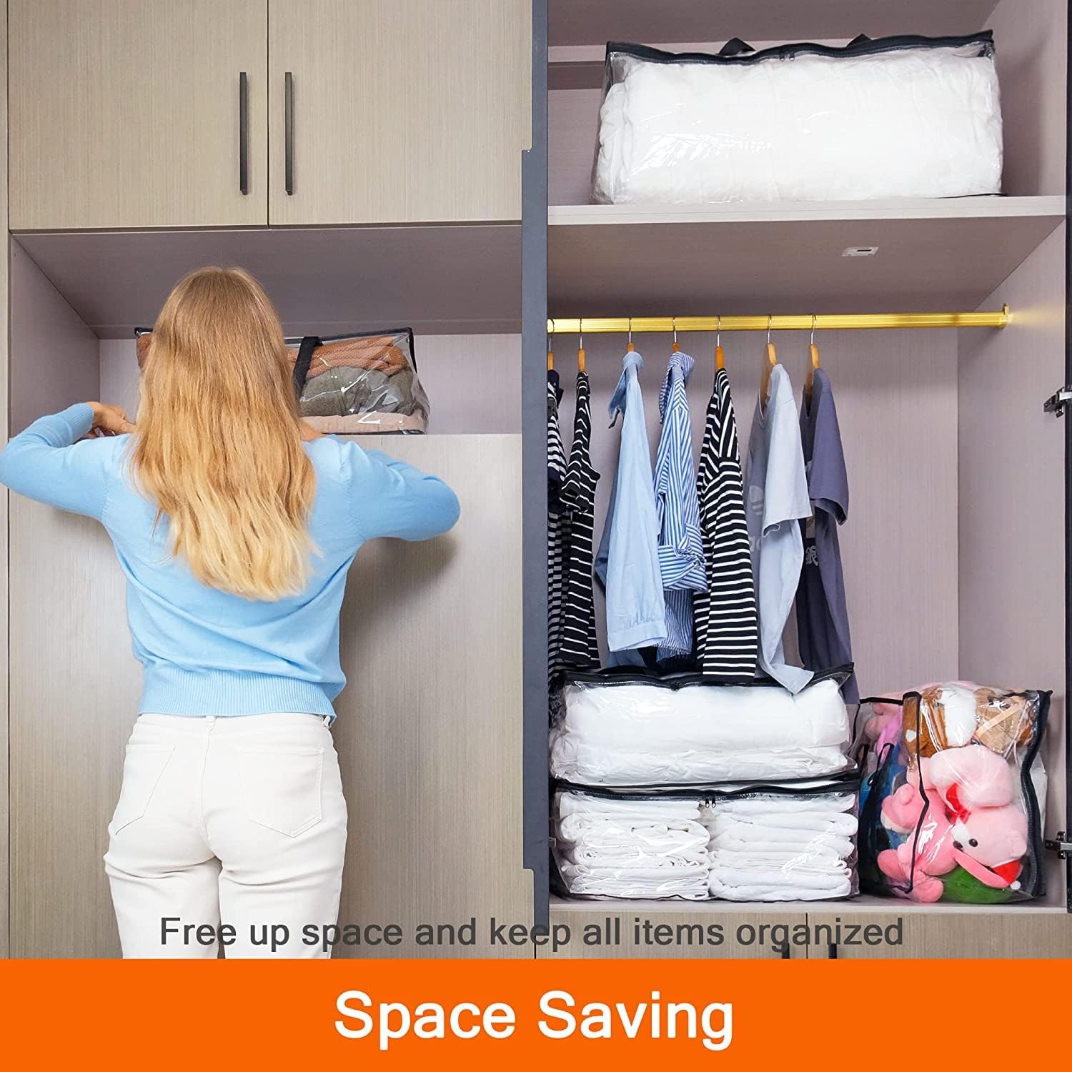 Vieshful 7 Pack Clear Comforter Storage Bag, 40L Clothes Storage Bag with Zipper Closet Organizer, Plastic Storage Containers Moving bags for Comforter, Blanket, Bedding, Duvet, Toys