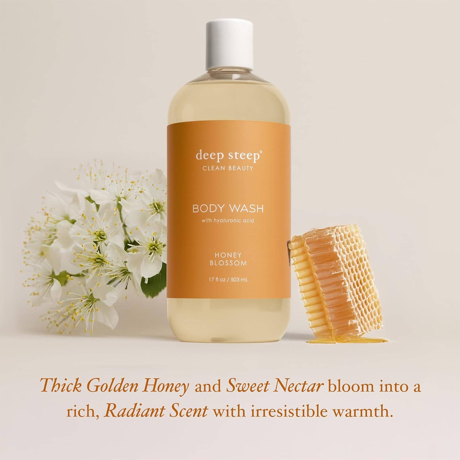 Deep Steep Body Wash, Honey Blossom, 17 oz – Hydrating Shower Gel with Hyaluronic Acid, Shea Butter, Aloe Vera & Argan Oil – Vegan, Clean Beauty, Clean & Refreshed Skin