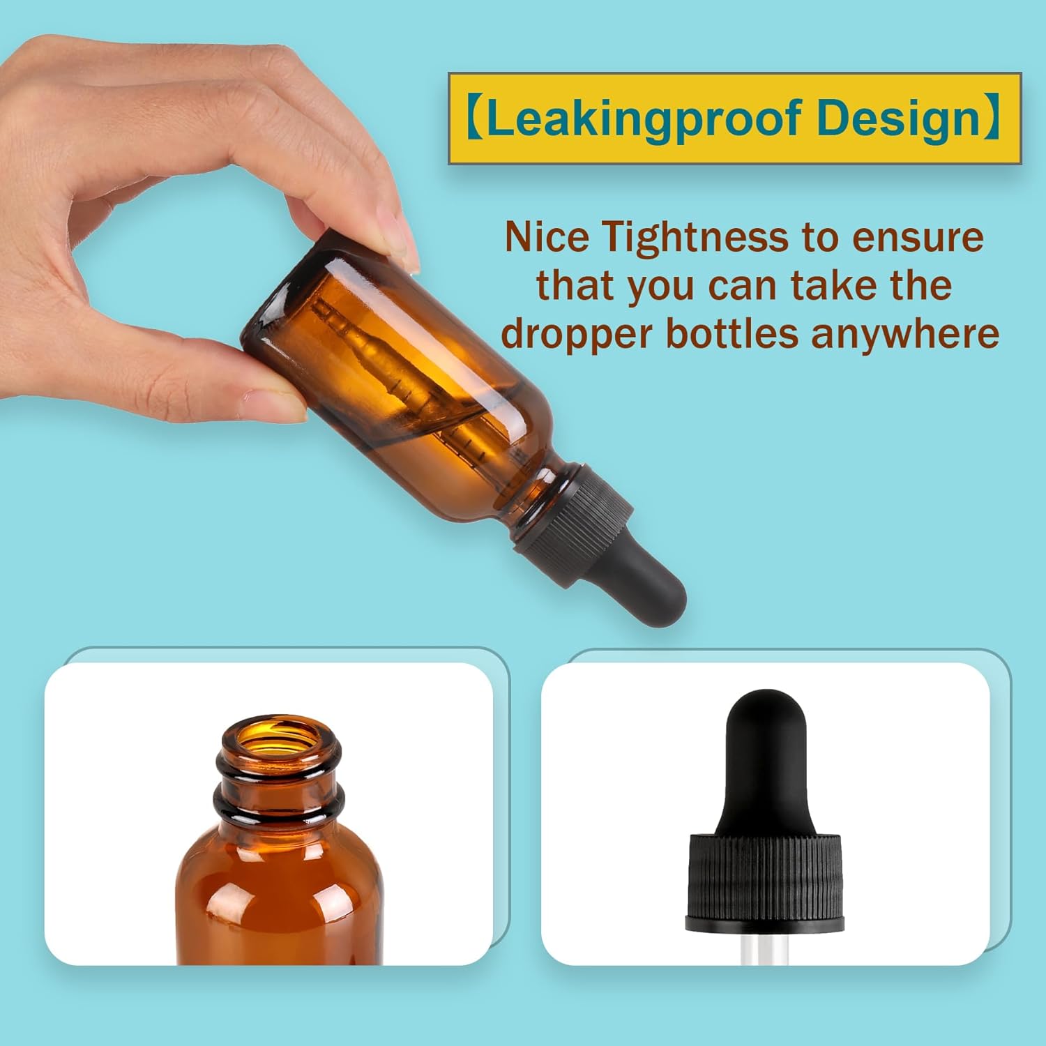 - 🧴【Leakingproof Design】The glass bottle mouth won't fall off and the cap fit tightly, no worries of they would leak in your pocket or handbag. Nice Tightness to ensure that you can take our essential oil dropper bottles anywhere for daily eye, face and body care.
