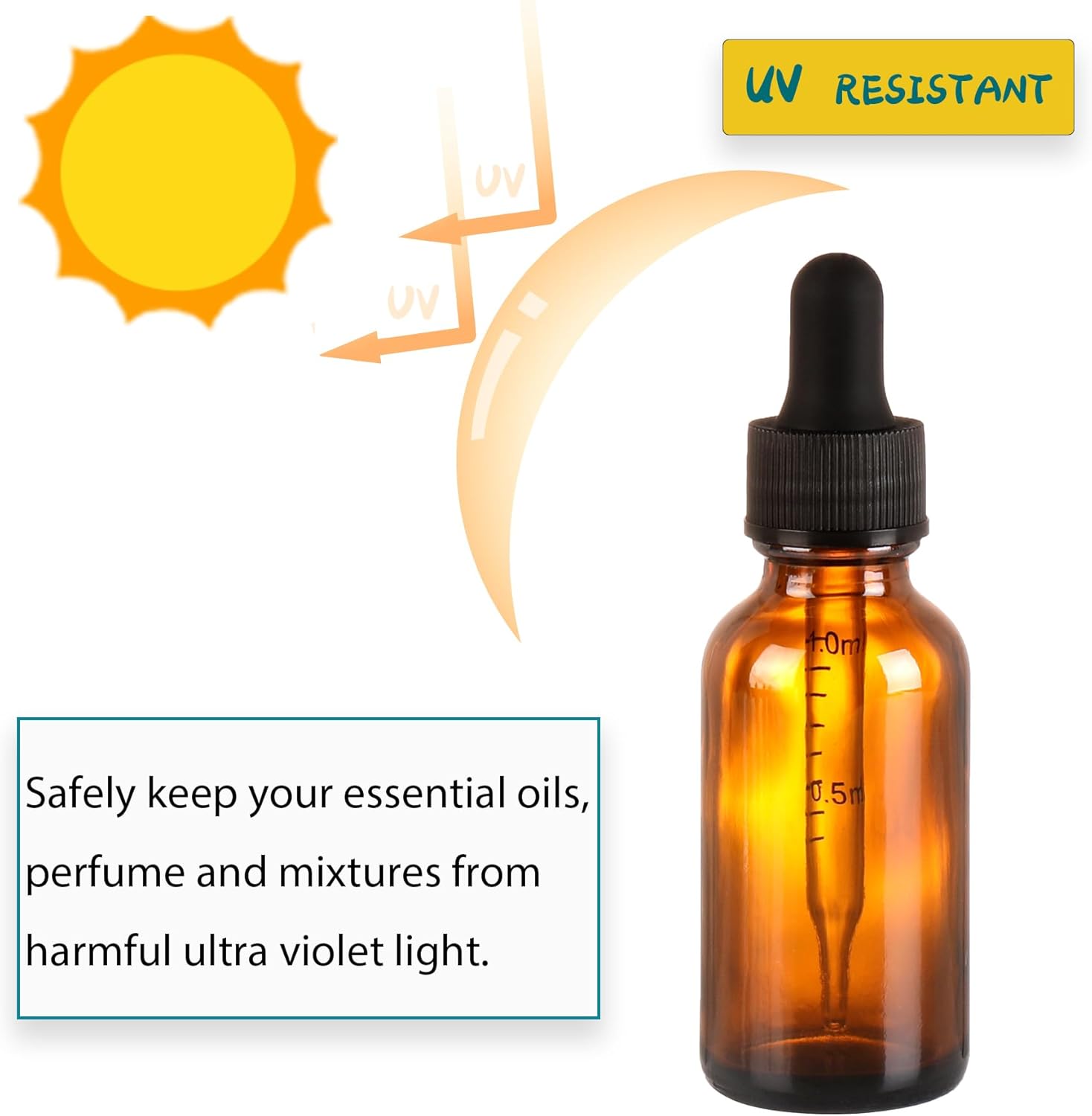 - 🧴【Quality Materia】These dropper bottles are made of corrosion-resistant glass and silicone tops, never absorb the flavors, they shelter photosensitive compounds from damaging UV rays. Safely keep your essential oils, perfume and mixtures.