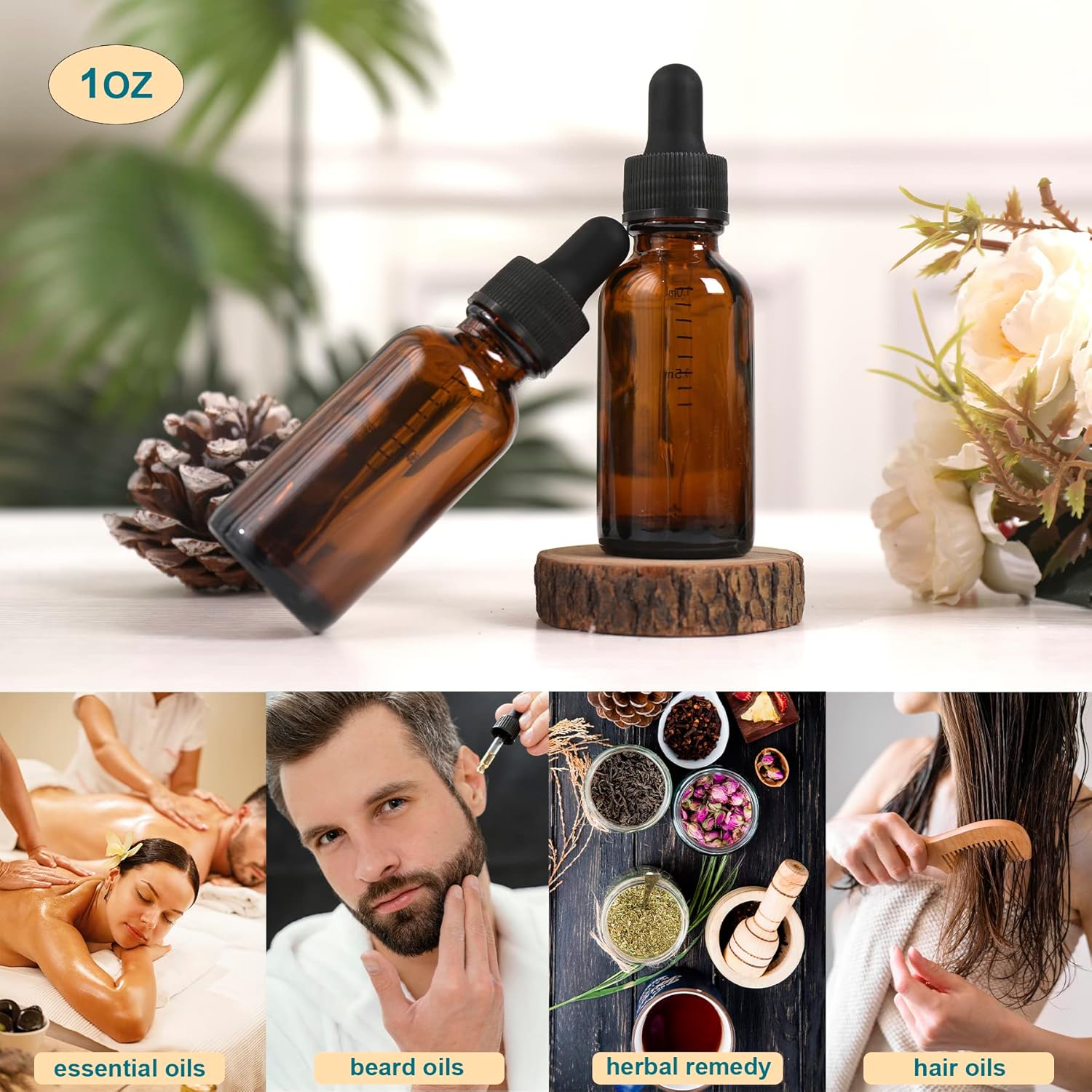 24 Pack,1oz Glass Dropper Bottle, Amber Tincture Bottles with Dropper,Pretty Finish for All Kinds of Liquids,Oil Bottles for Hair- Stronger Suction ideal for Leakproof Travel