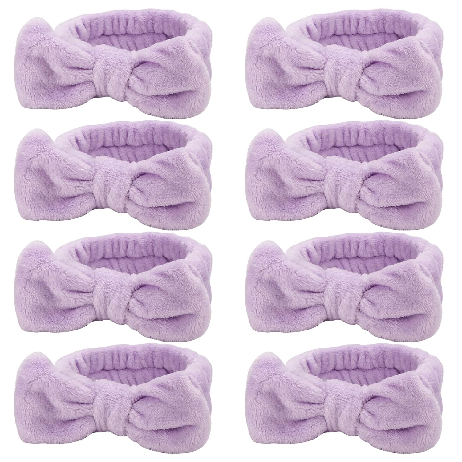Ondder Spa Headband for Washing Face 8 Pack Purple Skincare Headbands for Women Girls Terry Cloth Cute Bow Head Bands