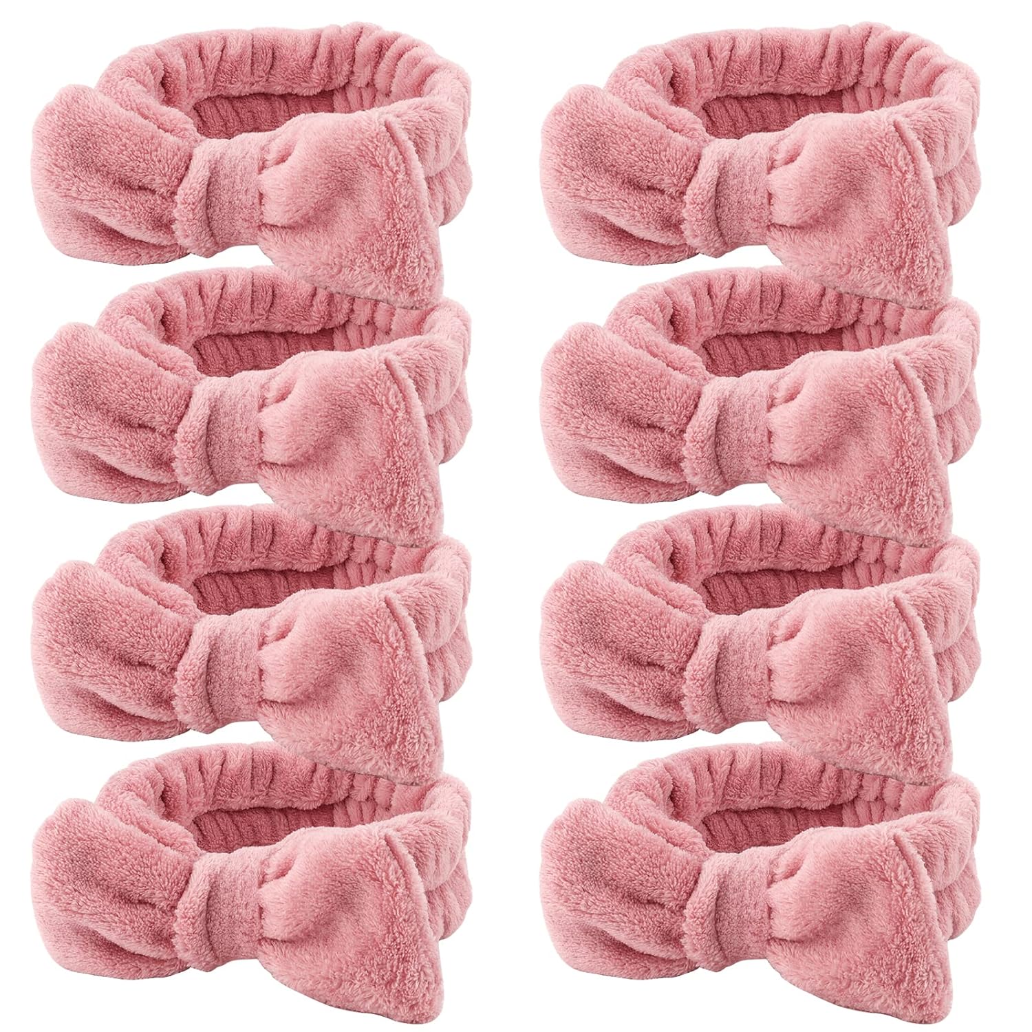 Ondder Spa Headband for Washing Face 8 Pack Dark Pink Skincare Headbands for Women Girls Terry Cloth Cute Bow Head Bands