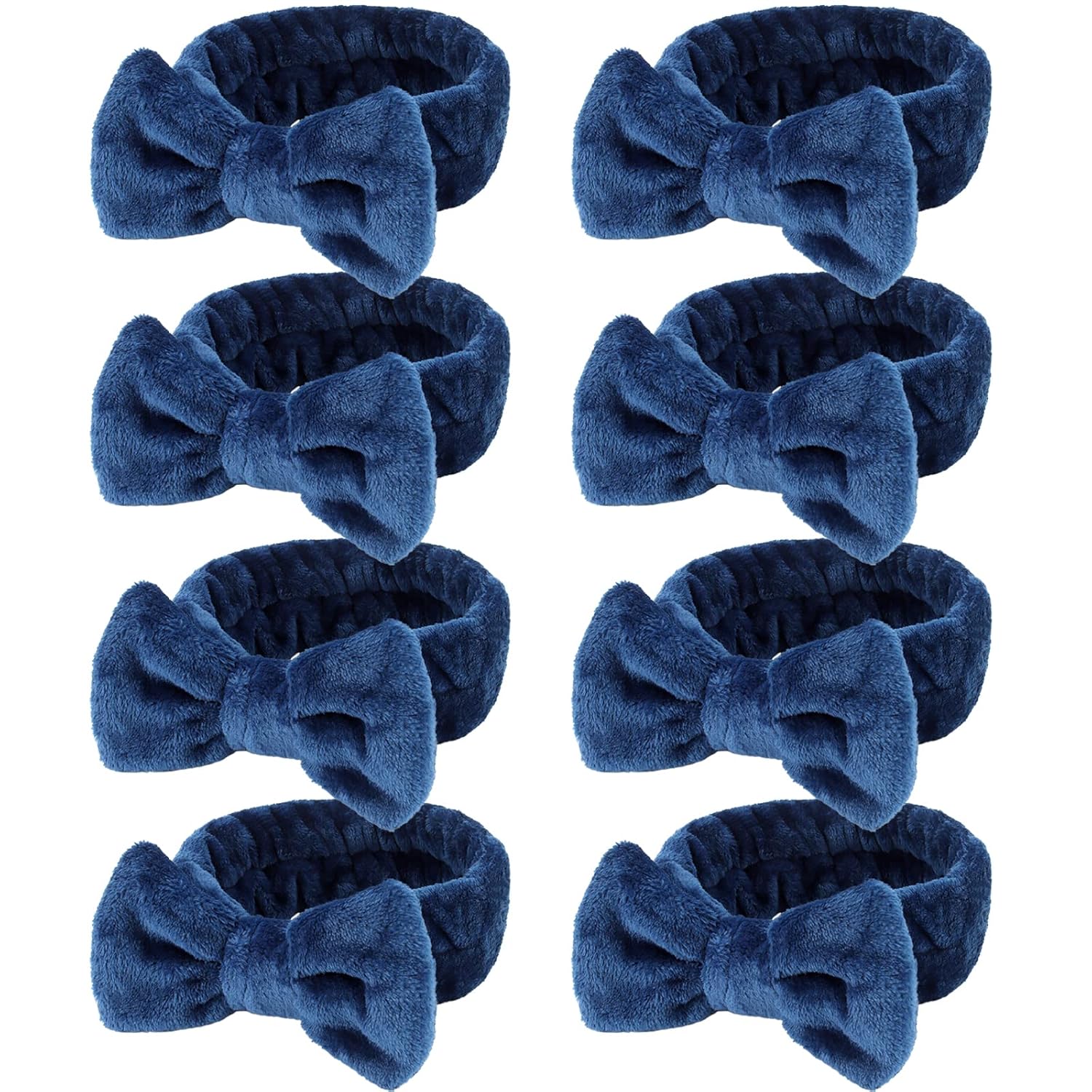 Ondder Spa Headband for Washing Face 8 Pack Navy Blue Skincare Headbands for Women Girls Terry Cloth Cute Bow Head Bands
