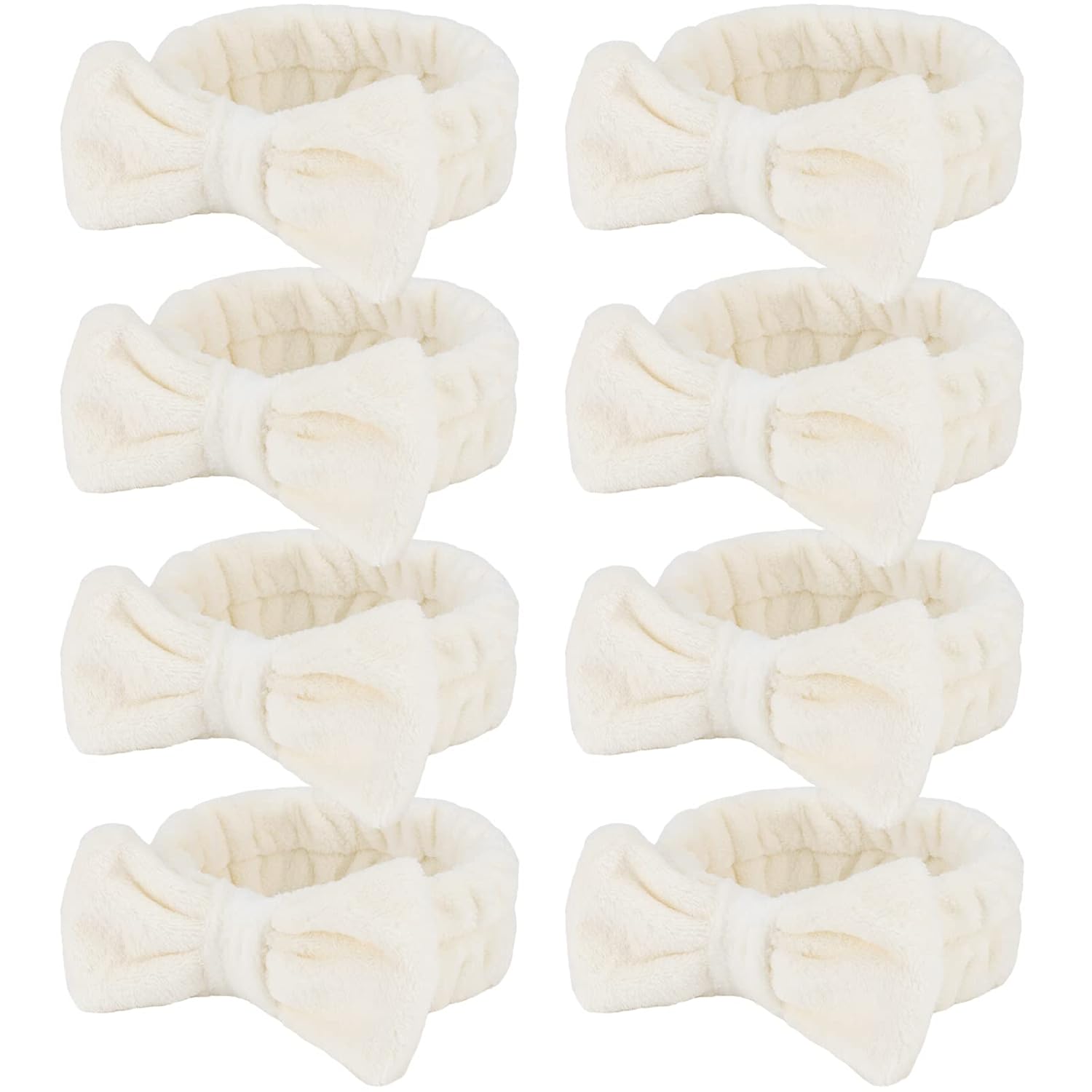 Ondder Spa Headband for Washing Face 8 Pack Beige Skincare Headbands for Women Girls Terry Cloth Cute Bow Head Bands