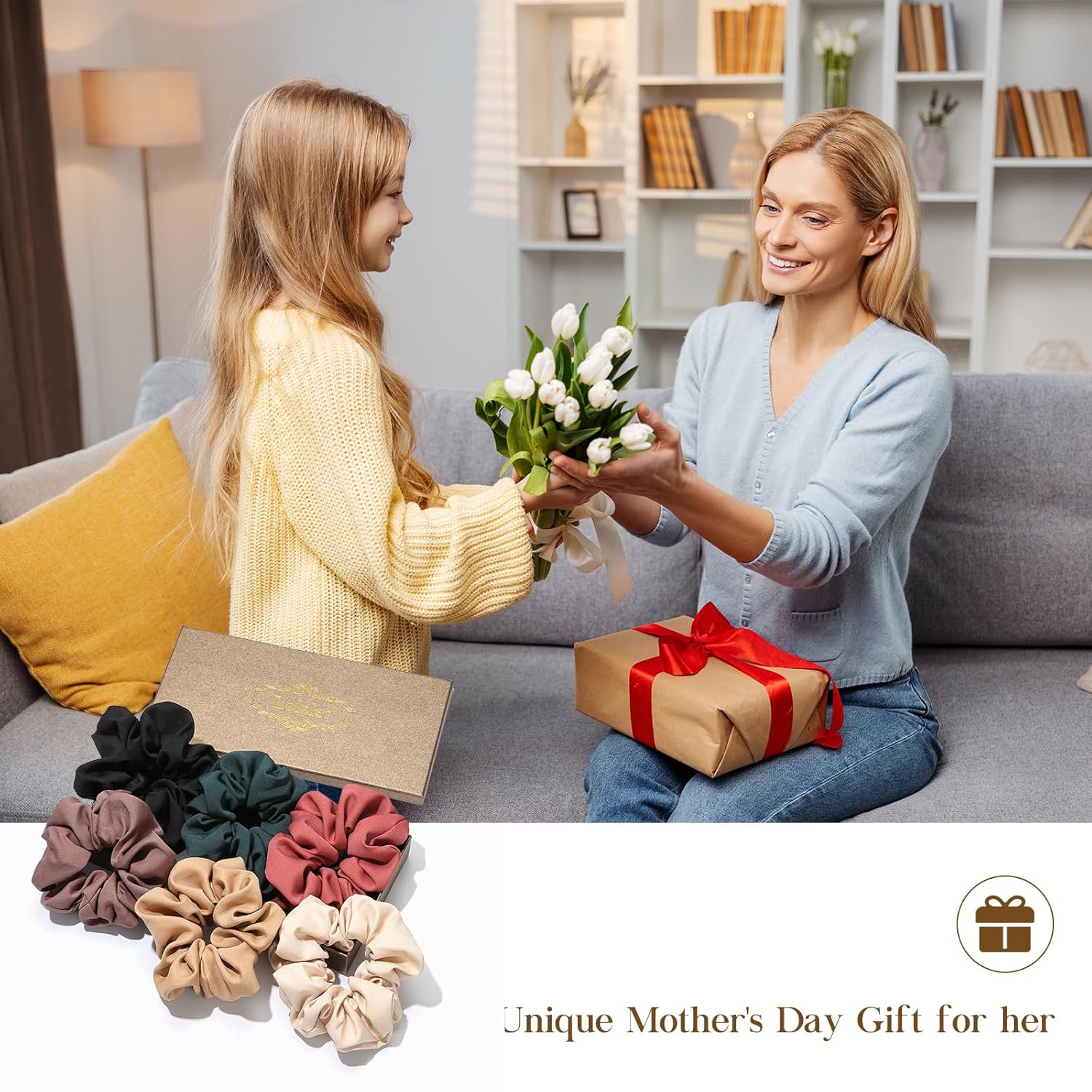 Lolalet Scrunchies for Women, Satin Hair Scrunchies Softer Than Silk Hair Ties for Hair Sleep, Big Scrunchy Ponytail Holder with Elastic Hair Bands for Girls Thick Thin Curly Hair -6 Pack, Style E
