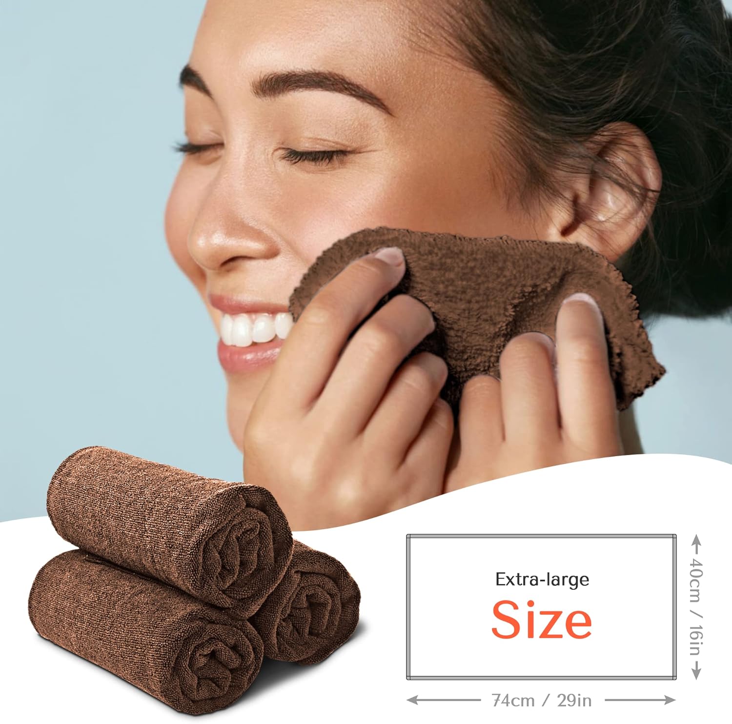 TASALON Microfiber Hair Towel for Salon - 10 Pack - 29 x 16 Inches, Quick Dry and Ultra-Soft Facial Towels with Soft Absorbant - Brown