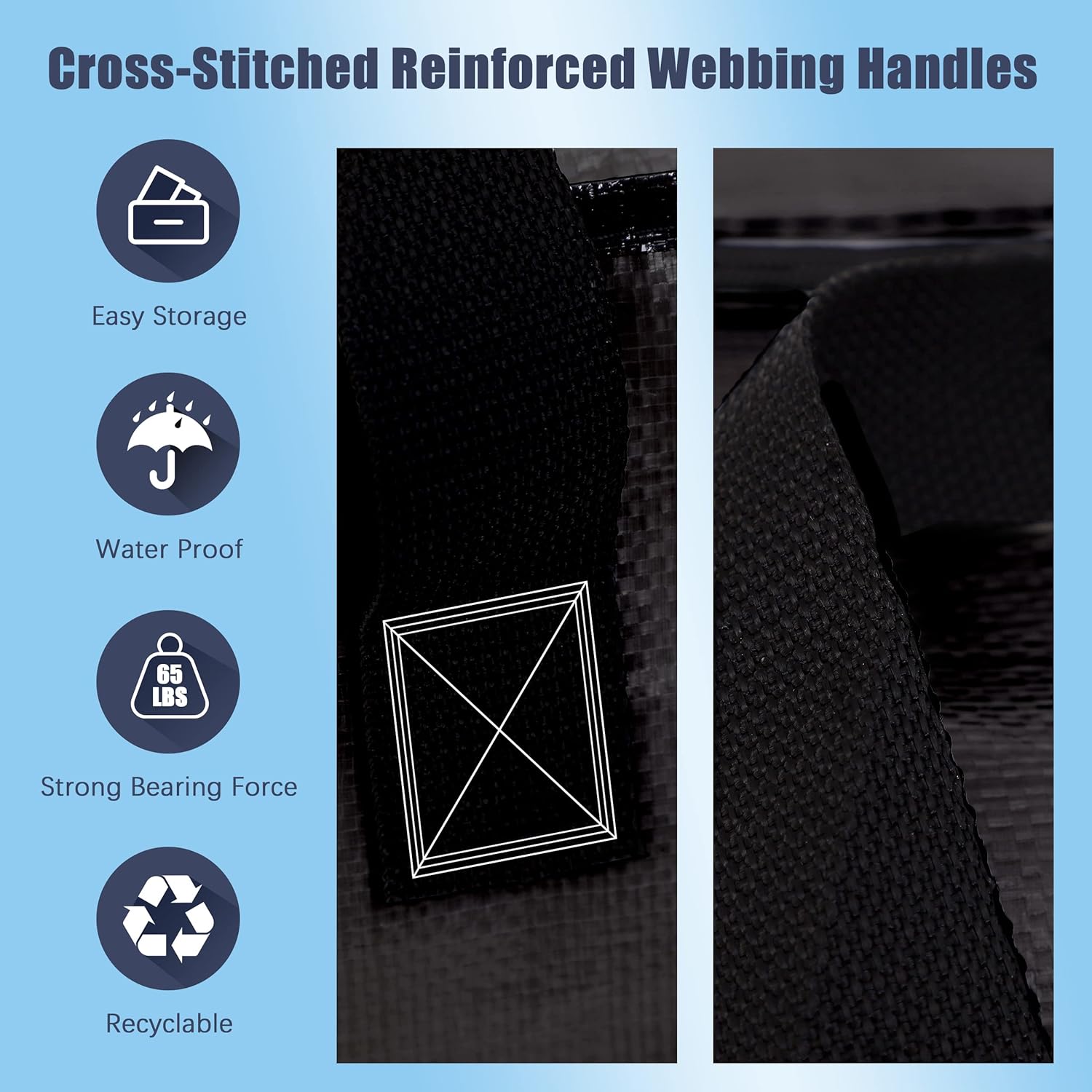 8 Pack Large Strong Bags with Zippers & Carrying Handles - Water-Resistant - Heavy Duty Storage Tote for Space Saving, Fold Flat, Alternative to Moving Box (Black)