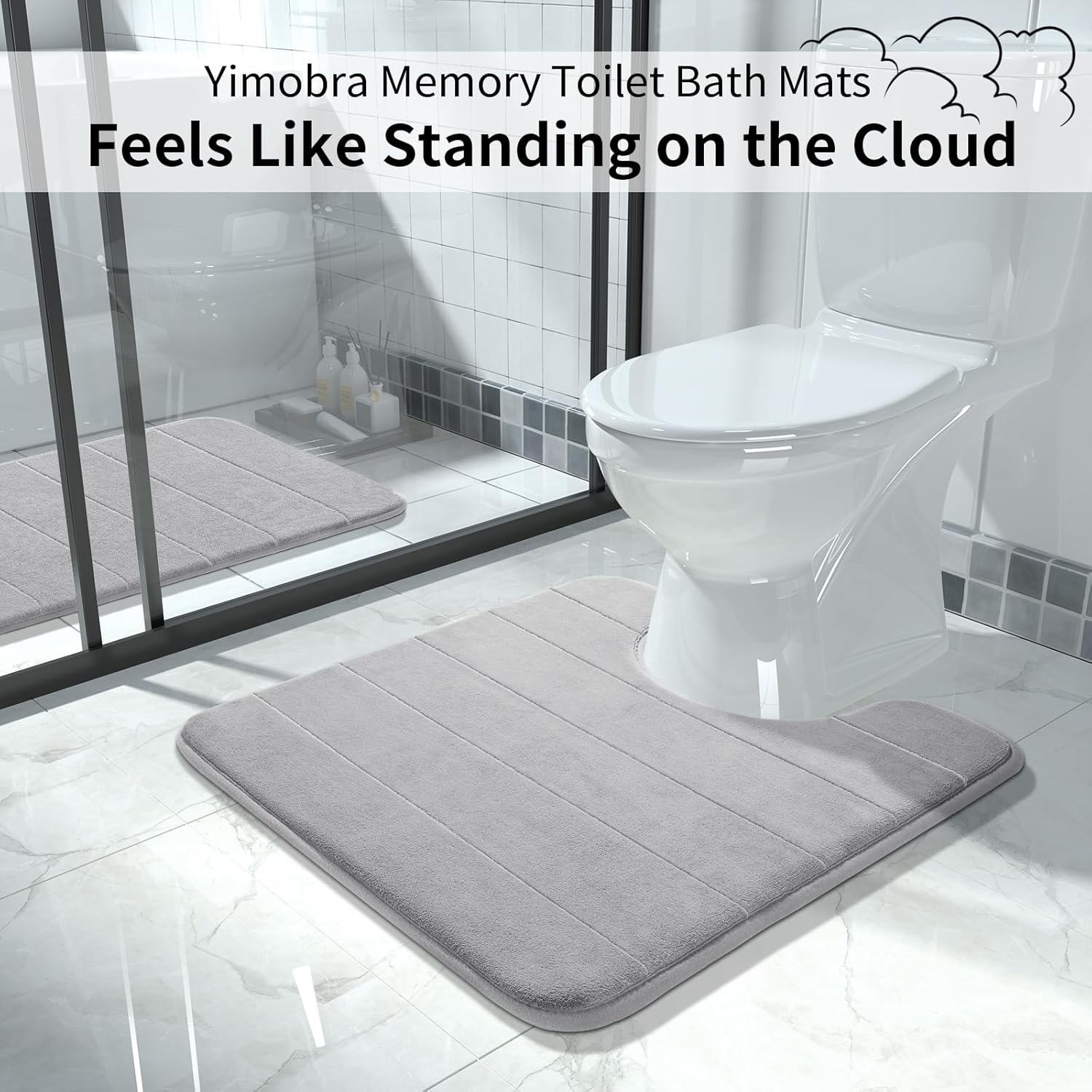 Yimobra Memory Foam Toilet Bath Mat U-Shaped, Soft and Comfortable, Super Water Absorption, Non-Slip, Thick, Machine Wash and Easier to Dry for Bathroom Commode Contour Rug, 24 X 24 Inches, Gray