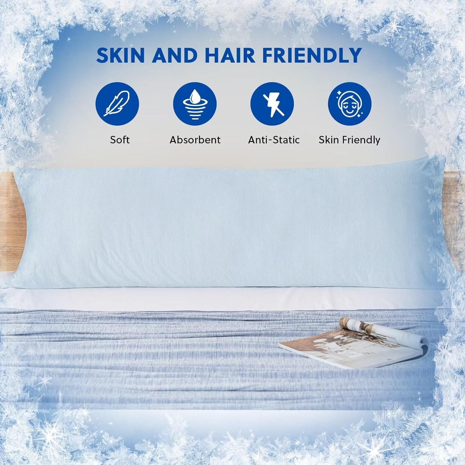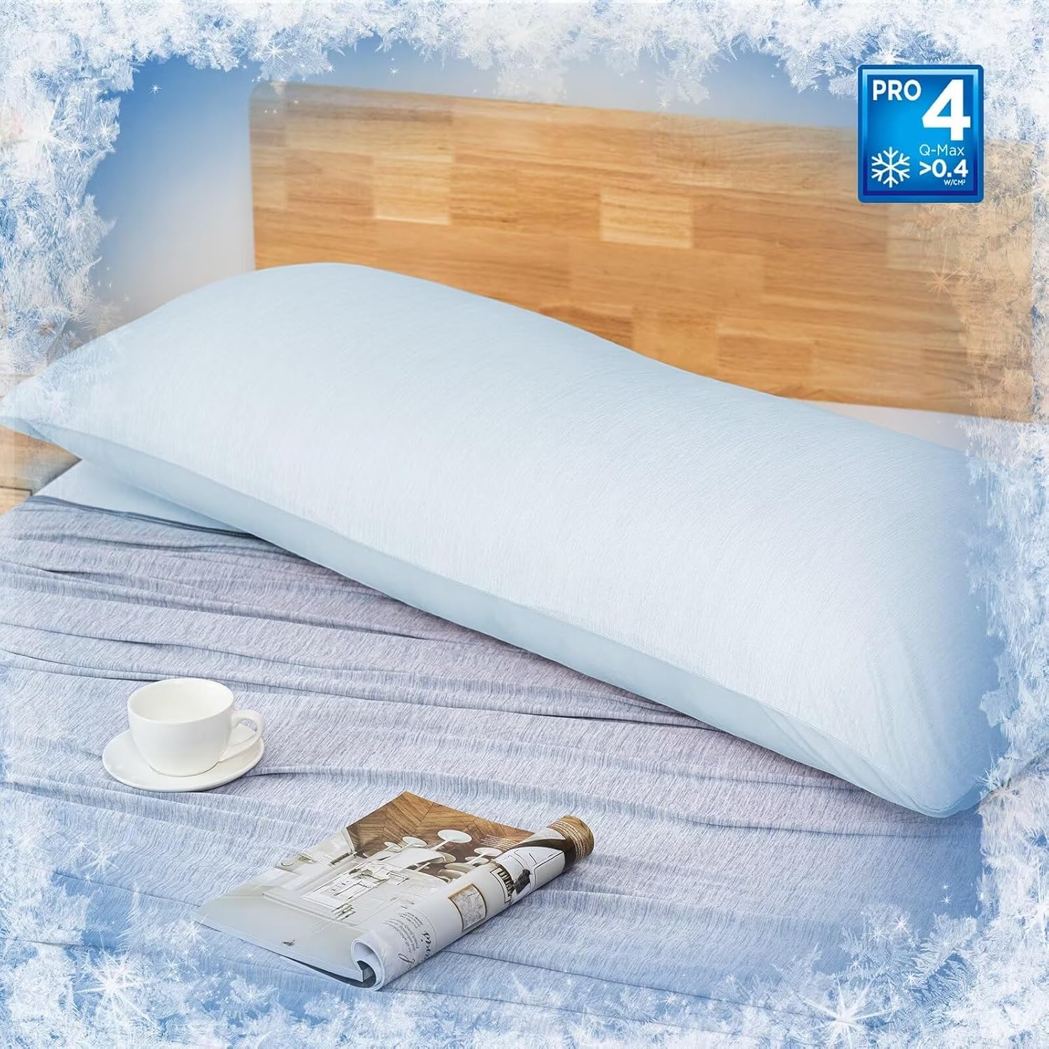 HOMFINE Cooling Pillowcase Body Size - Double Side Q-Max 0.439 Cooling Fiber for Pillow Protector, Breathable Long Cold Pillow Cover for Hot Sleeper Night Sweat, Zipper, 1 Pack (20"x54", Light Blue)