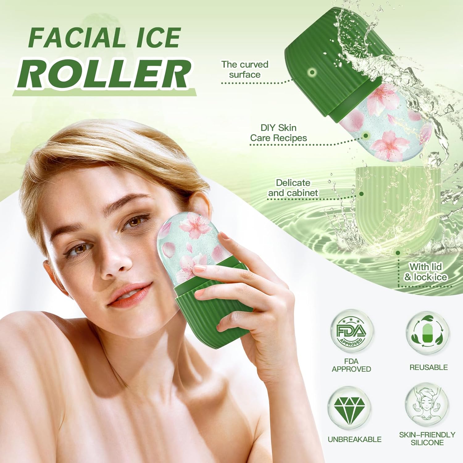 Ice Roller for Face and Eye, Facial Beauty Roller Skin Care Tools, Ice Facial Cube, Gua Sha Massage, Silicone Ice Mold for Face Beauty (Green)