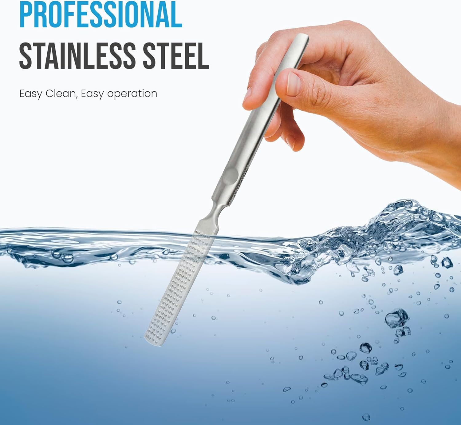 - DURABLE CORN REMOVER FOR TOES: Foot rasp callus remover professional Gives equally good results on both dry and wet foot surfaces that allows the user to work according to their own preference and satisfaction. Pumice stone for between toes stainless steel pedicure foot file callus rasp for feet callus remover for feet.